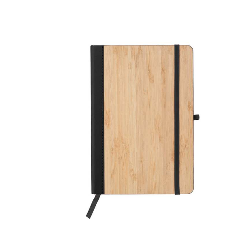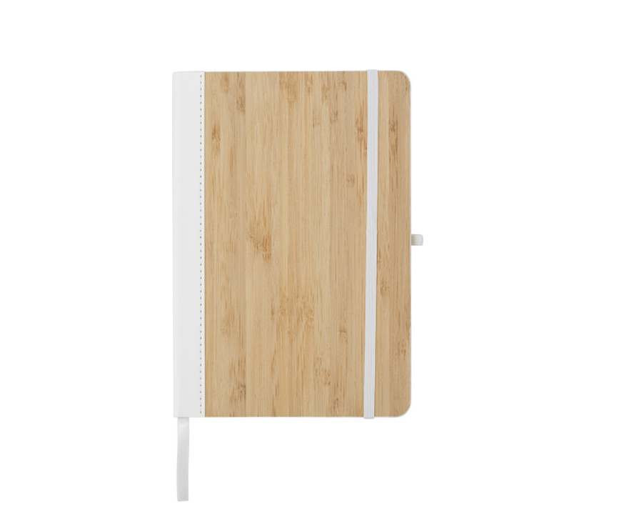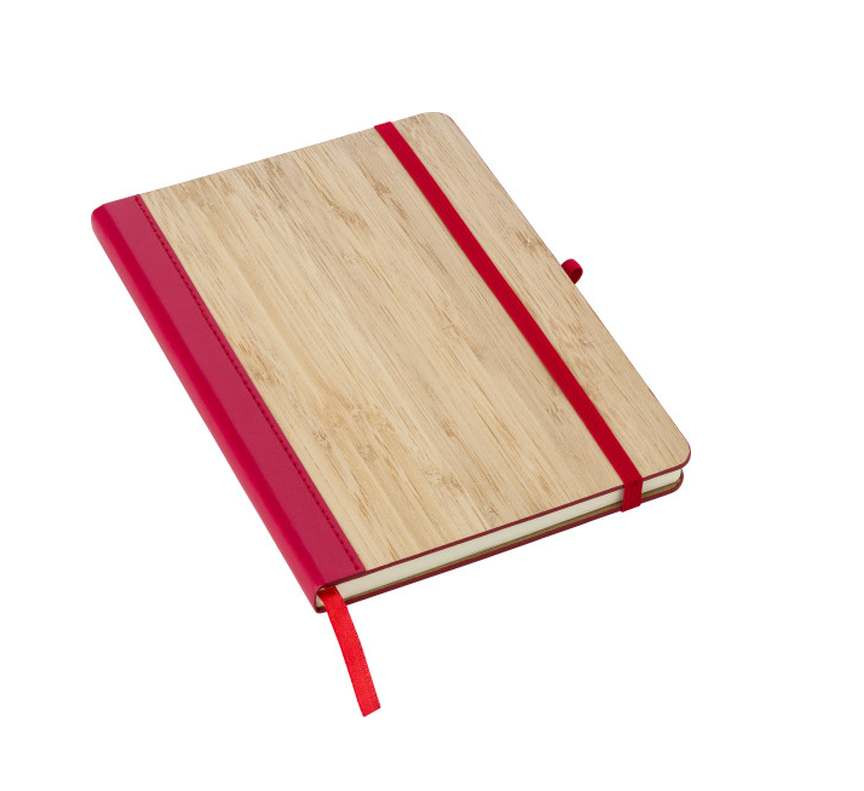 Notitieboekje van ca. A5 formaat met een Bamboe cover. Deze notitieboekjes bevatten 96 gelineerde pagina's. De rug, leeslint en elastische band is in kleur. We kunnen deze boekjes al vanaf 25 stuks voor u lasergraveren op de bamboe omslag. Uw logo wordt dan d.m.v. een laserstraal in het bamboe gegraveerd. Dit ziet er echt heel mooi uit. U kunt de boekjes zonder logo bestellen vanaf 15 stuks.