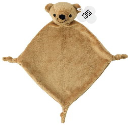 Babytutdoekjes in vesrchillende uitvoeringen. Deze babydoekjes zijn 100% polyester en hebben een afmeting van ca. 19 x 19 mm. Aan deze leuke geboorte cadeautjes is een kartonnen label aangebracht. Hierop kunnen wij uw logo drukken. Als beer, kikker, kuiken, konijn en panda.