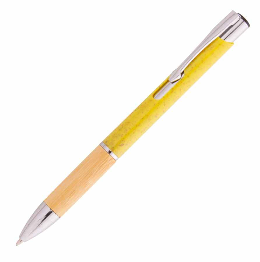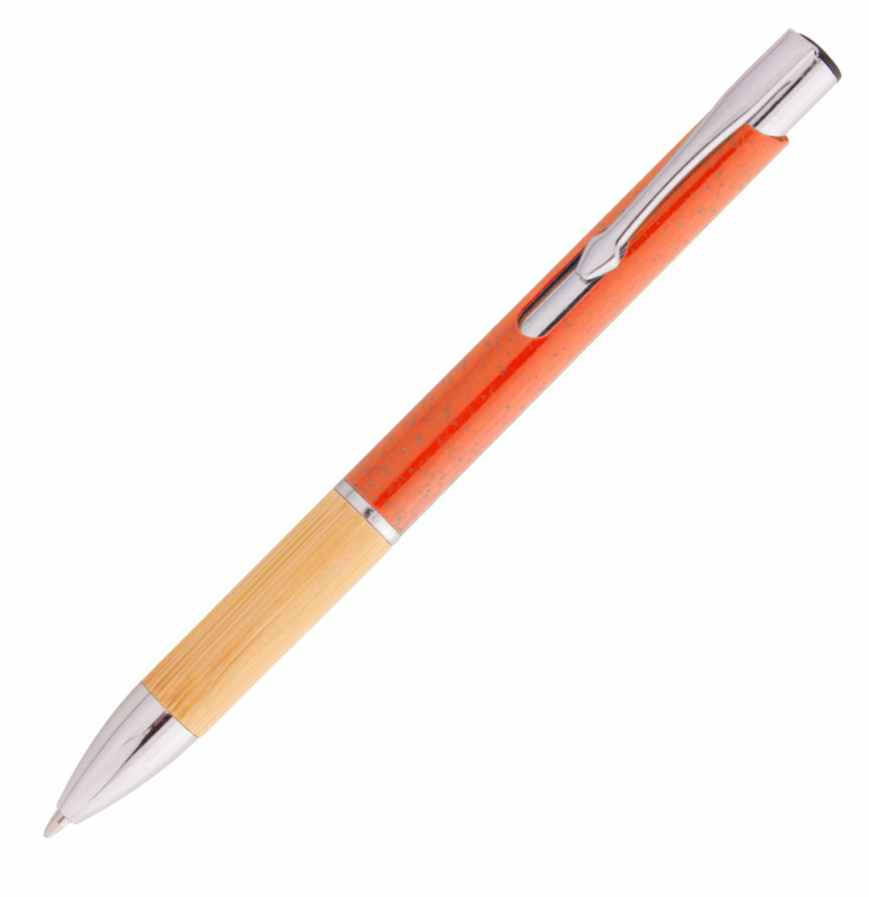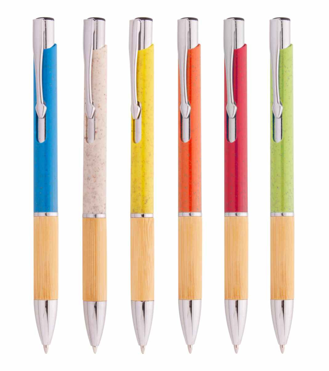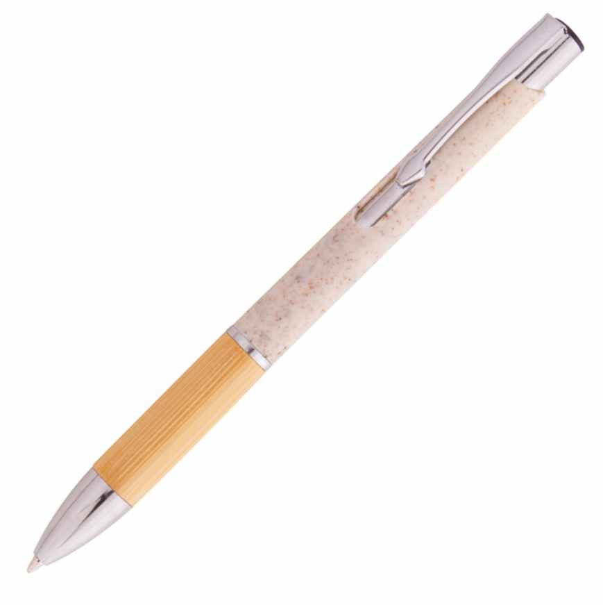Balpen van ecologische kunststof dat is gemaakt van Tarwestro. Met een grip die is gemaakt van Bamboe. De metalen delen zijn glanzend zilver. Deze pen heeft een blauwschrijvende vulling. We kunnen deze balpen van uw reclame tekst en/of logo voorzien met een bedrukking van maximaal 60 x 6 mm. Indien u deze balpen liever zonder opdruk besteld dan kan dat ook vanaf 150 stuks.