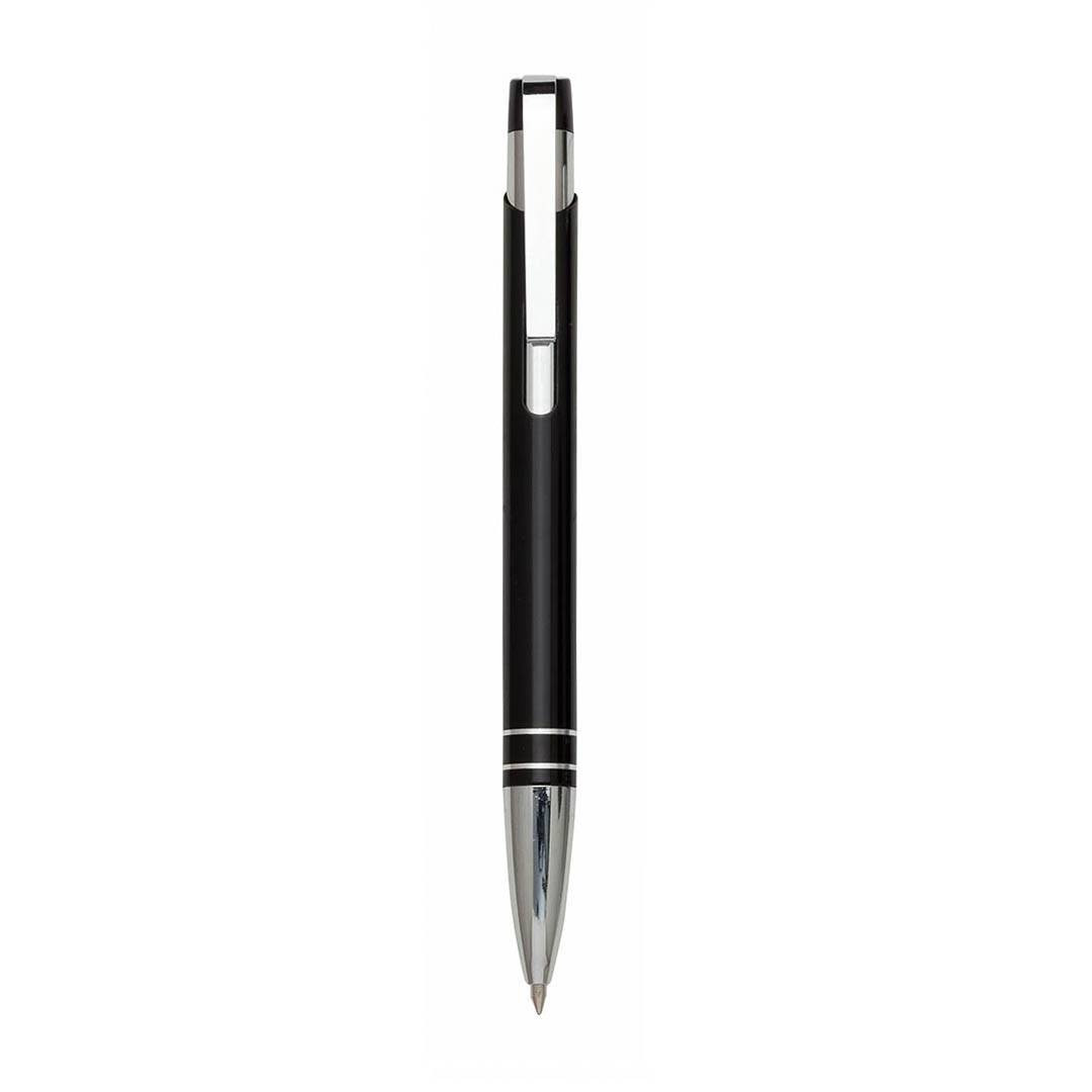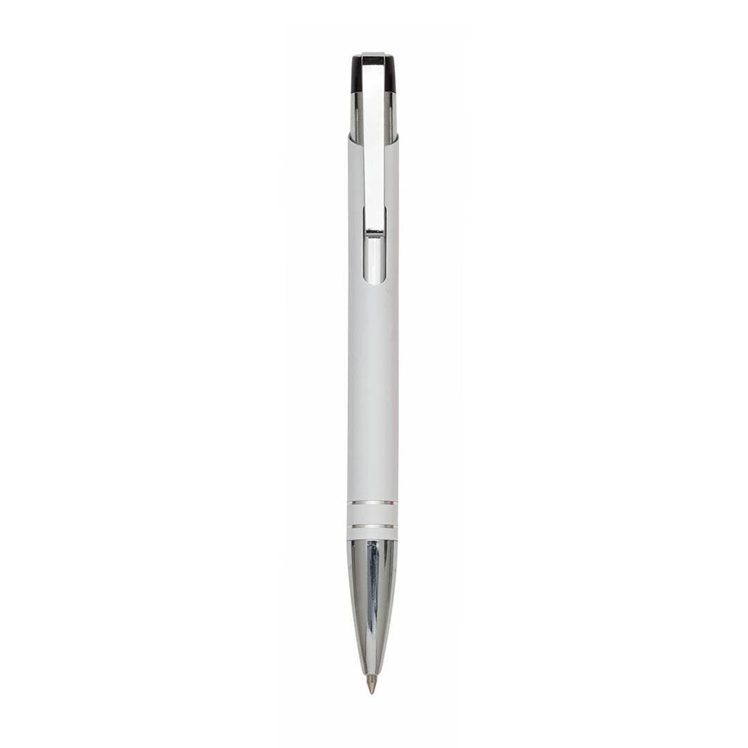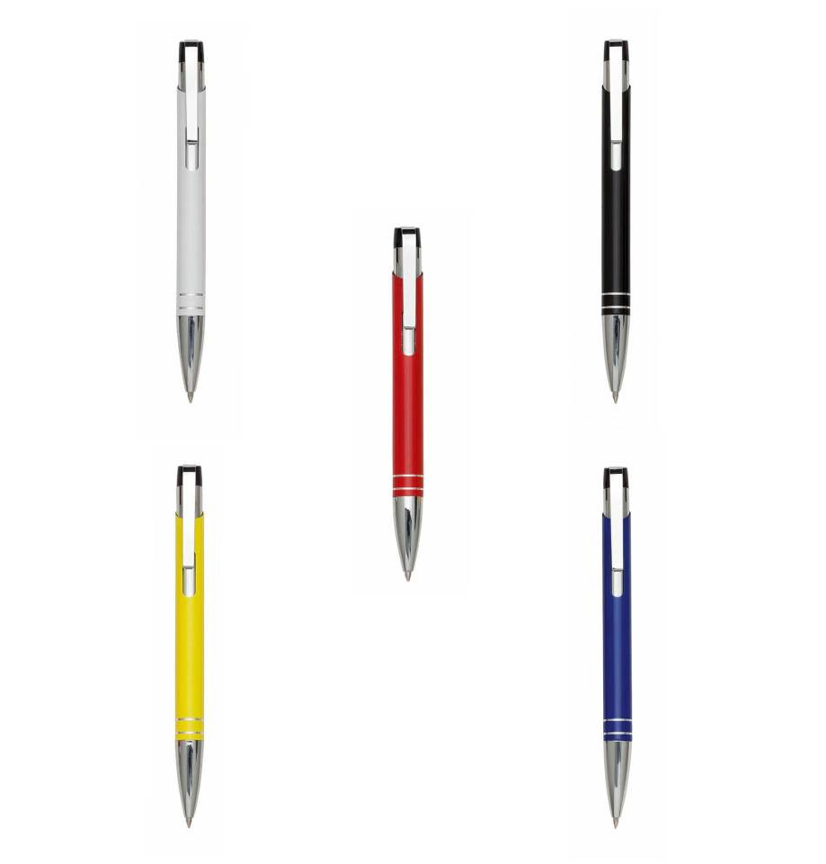 Metalen Balpen met blauwschrijvende vulling. De behuizong is van gestanst aluminium. De clip is in een fraaie gebnogen vorm. Deze mooie balpen kunnen we voor u graveren met uw logo of tekst. Wilt u liever niet graveren maar drukken in kleur dan kunt u het beste even kontakt met ons opnemen. .