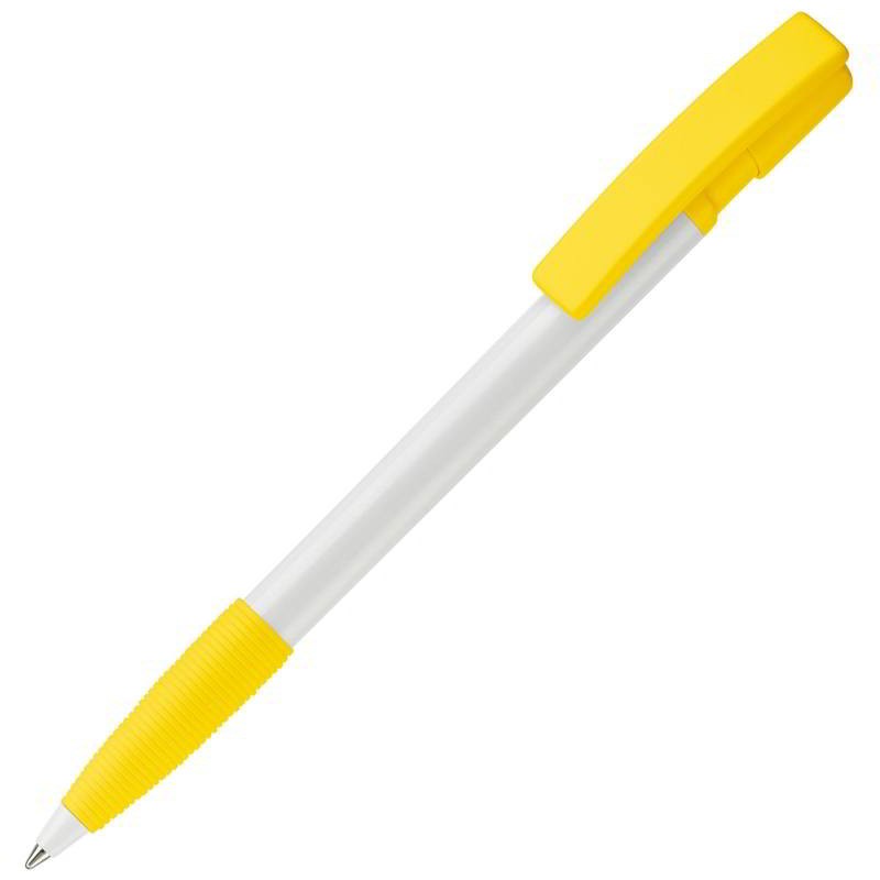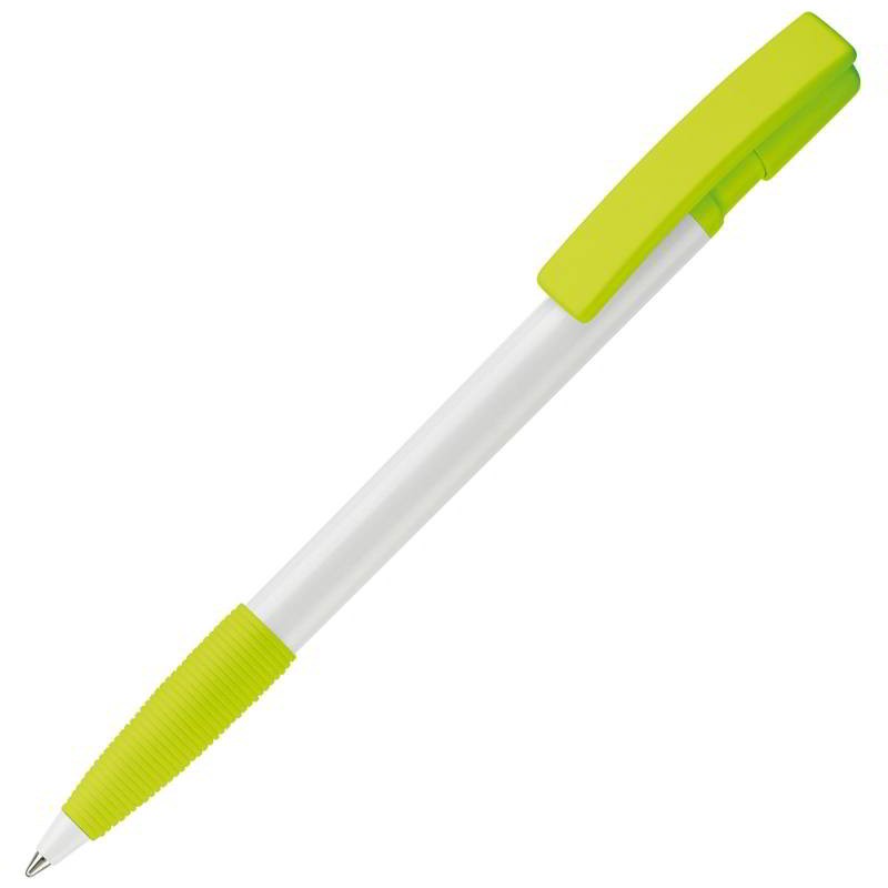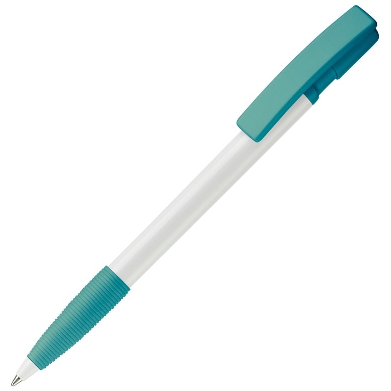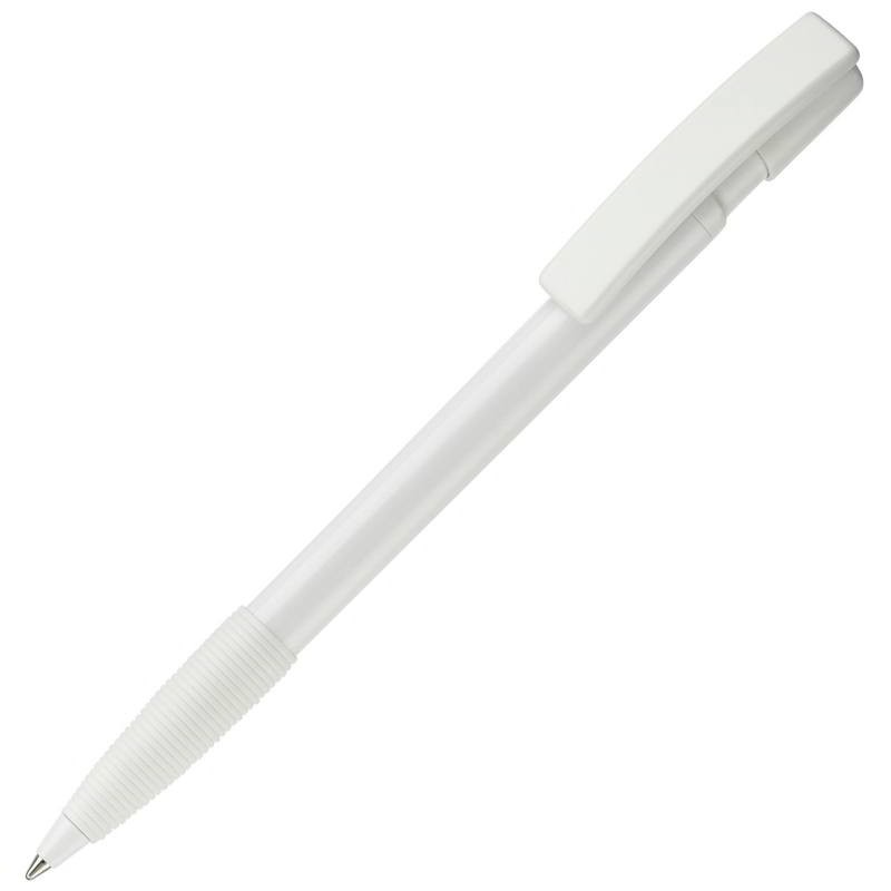 Balpen van kunststof met een witte houder en gekleurde clip en geribbeld voorstuk. Van Duitse top-kwaliteit en voorzien van een X20 refill-vulling. Deze vulling staat bekend omdat hij "zo lekker schrijft"de balpen kan bedrukt worden met uw logo en/of reclame tekst.