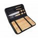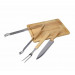 Mooie set voor uw Barbeque. Deze set bestaat uit een snijplank / serveerplank en een vork, mes en vleestang. Het metaal is van RVS. Uw logo kunnen wij lasergraveren op de snijplank vanaf 10 stuks. We kunnen eventueel ook op de tas drukken.Indien u dit wenst dan kunt u even contact met ons opnemen. U kunt deze BBQ set ook zonder opdruk bestellen vanaf 5 stuks.