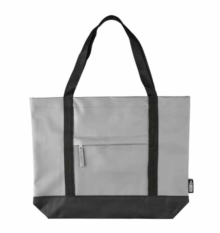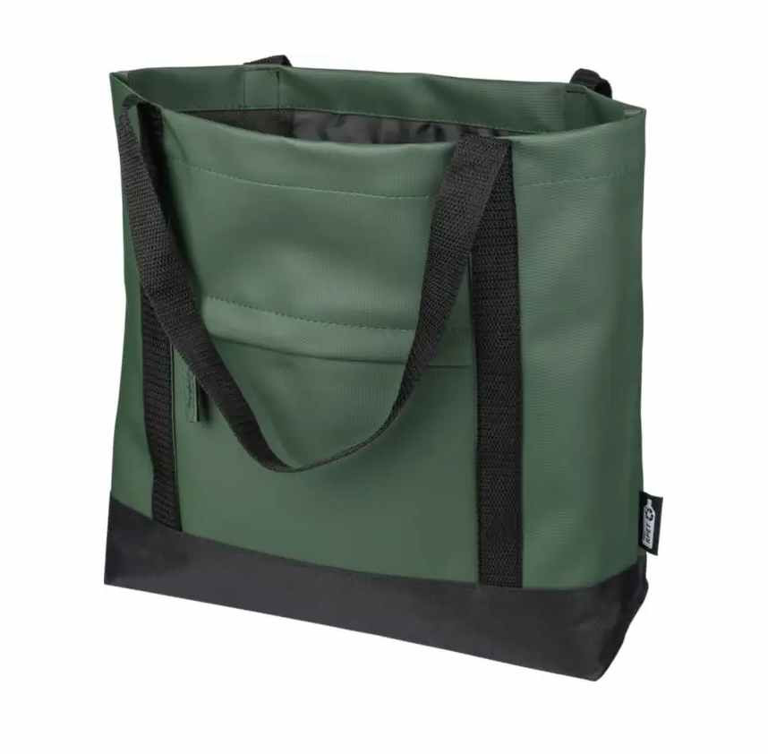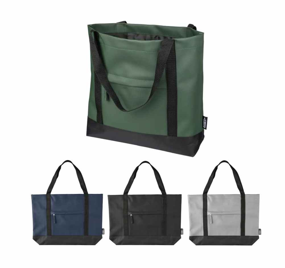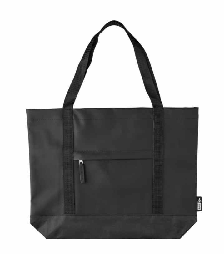 Fraaie boodschappentas met een afmeting van 42 x 9,5 x 33 cm. Deze Boodschappentas is gemaakt van rPET Polyester met een waterafstotende PU coating. De tas heeft een voorvak met een rits en een klein binnenvakje met een rits. De lange draaghengsels zorgen voor conmfortabel dragen. De inhoud van de tas is 10 liter en kan ca. 10 kg dragen.Aan de buitenzijde van de tas is standaard een rPET label gestikt. RPET is een materiaal dat is gemaakt van oude PET-flessen. Hier wordt een garen van gesponnen en daar is dan dit artikel weer van gemaakt. Dit maakt dit artikel een echt duurzaam artikel. We kunnen de tas voor u bedrukken met een digitaal geprinte full-colour transfer. We kunnen dit artikel voor u bedrukken in 1- of meerdere drukkleuren. Voor de prijs maakt het niet uit in hoeveel kleuren uw logo gedrukt moet worden. Wanneer u bij uw bestelling dan kiest voor 1 drukkleur en daarna kiest u de drukkleur "full-color" dan drukken wij uw logo in meerdere kleuren terwijl u slechts voor 1 drukkleur betaald. U kunt deze tassen ook zonder opdruk bestellen. De minimale afname is dan 10 stuks.