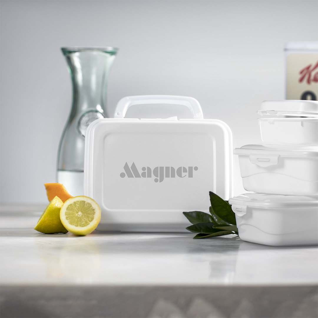 Witte Broodtrommel / Lunchbox van PP kunststof. Deze broodtrommel met een inhoud van 1 liter heeft een afmeting van ca. 20 x 16 x 6,5 cm. Voorzien van een handvat. Deze broodtrommel is made in Europe en goedgekeurd in verband met Food Safety. We kunnen deze broodtrommel voor u bedrukken op het deksel in maximaal 1 drukkleur. ook zonder opdruk kunt u deze al bestellen vanaf 50 stuks.