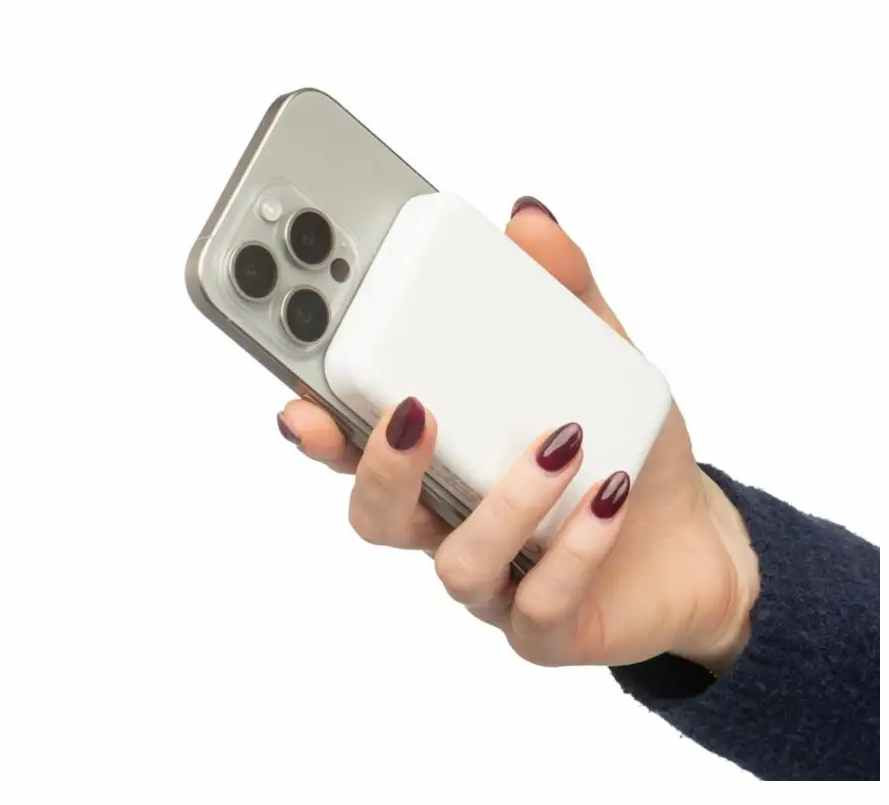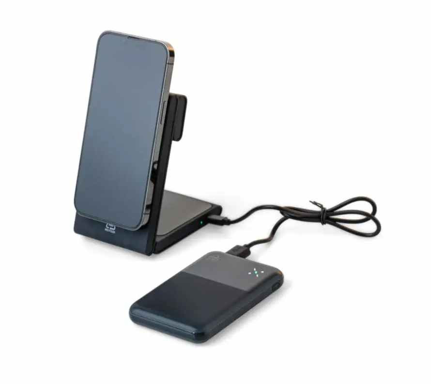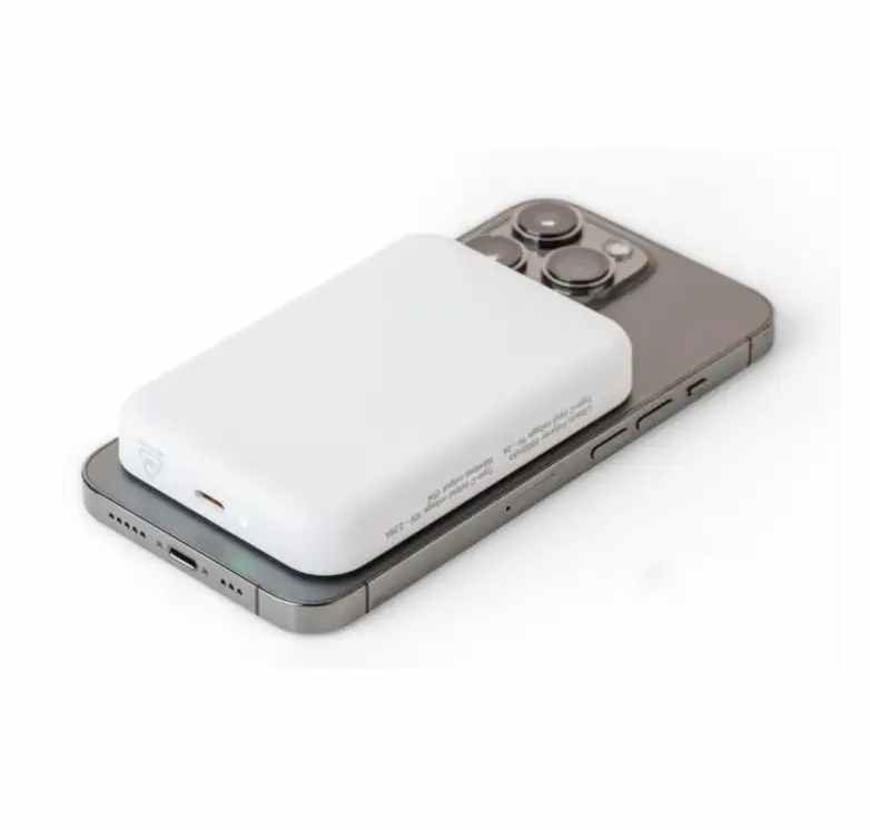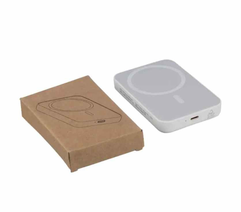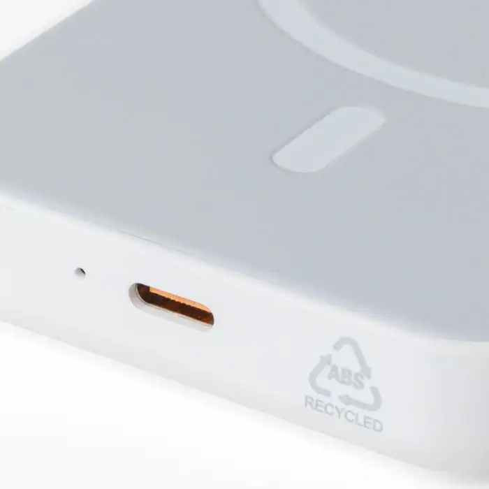 Powerbank en Oplader van gerecyclede ABS kunststof. Deze draadloze oplader-powerbank is met 5.000?mAh Li-ion batterij en 15W magnetische draadloze oplaadoutput (compatibel met MagSafe). Type-C ingang tot 20W en Type-C uitgang: DC5V/3A, DC9V/2,22A, DC12V/1,67A. Voorzien van bescherming tegen oververhitting, kortsluiting, overspanning en overstroom. Stopt automatisch bij oververhitting. Inclusief extra metalen ring met zelfklevende achterkant voor draadloos opladen van niet-MagSafe apparaten. Voorzien van label met gerecycleerd ABS (RABS)-logo aan de zijkant. Per stuk verpakt in een bruine kartonnen doos met zijdepapier. We kunnen dit artikel voor u bedrukken in 1- of meerdere drukkleuren. Voor de prijs maakt het niet uit in hoeveel kleuren uw logo gedrukt moet worden. Wanneer u bij uw bestelling dan kiest voor 1 drukkleur en daarna kiest u de drukkleur "full-color" dan drukken wij uw logo in meerdere kleuren terwijl u slechts voor 1 drukkleur betaald. Zonder opdruk kunt u de powerbank bestellen vanaf 5 stuks,