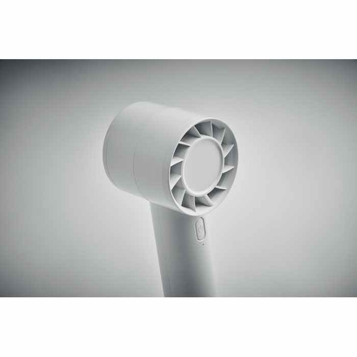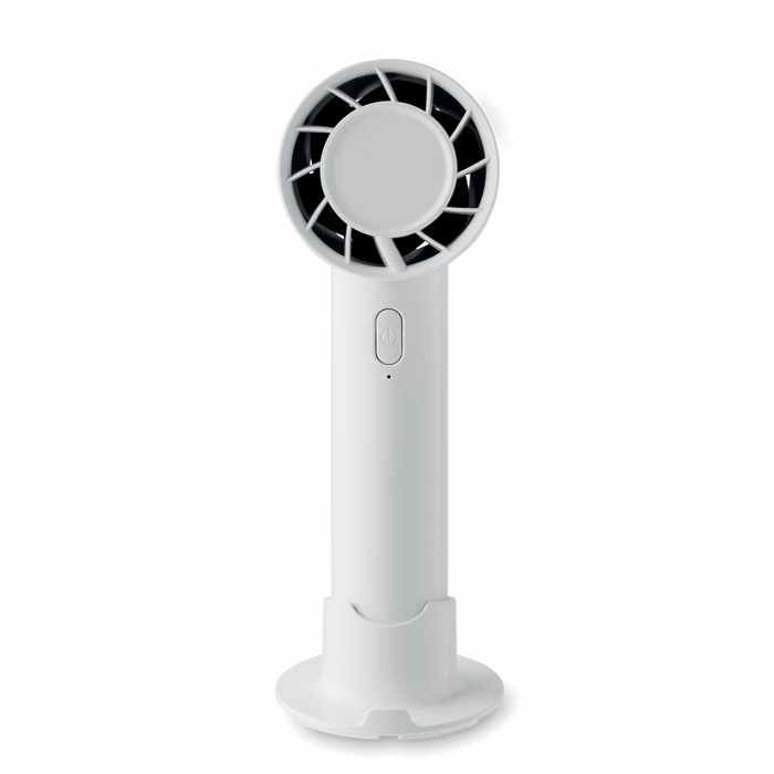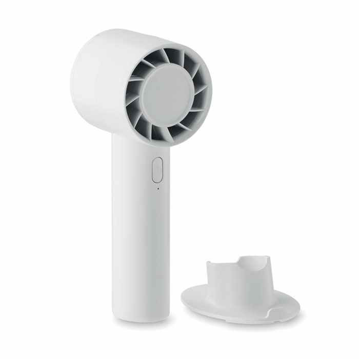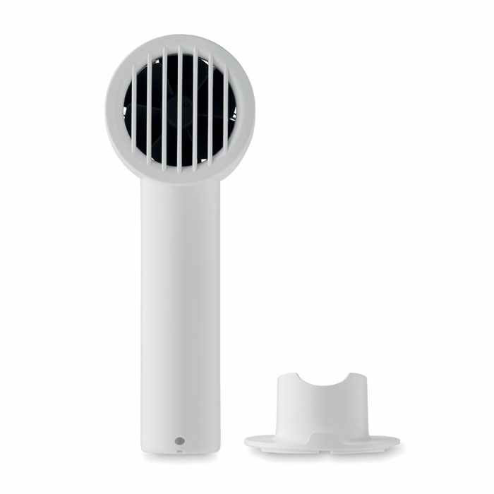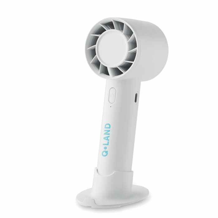 Draagbare Ventilator in een klein model. Deze mini ventilator is inclusief Bureaustandaard met mogelijkheid tot een smartphone houder. De miniventilator heeft 3 snelheden en is oplaadbaar via een USB poort, We kunnen dit leuke relatiegeschenk voor u bedrukken vanaf 15 stuks.we kunnen eventueel uw logo ook aanbrengen door middel van een doming. Indien u dit wenst kunt u bij ons de prijs hiervan opvragen. U kunt het ook zonder opdruk bestellen in een kleine oplage vanaf 8 stuks.