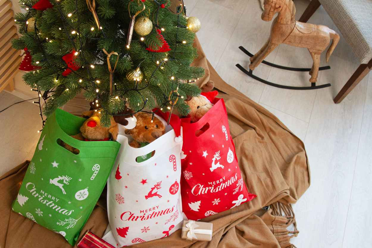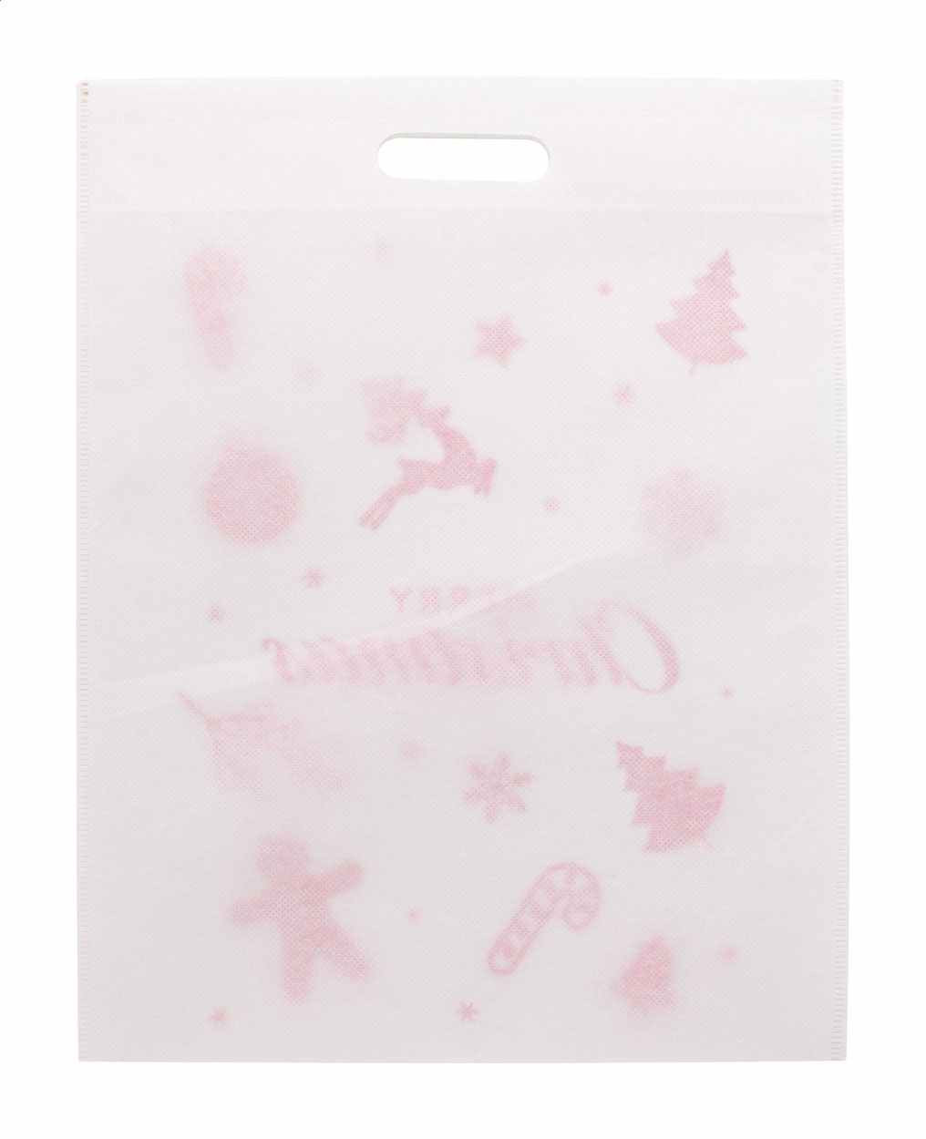 Draagtas met een kerstmotief. Deze kersttas heeft uitgestanste handgrepen en is gemaakt van NonWoven materiaal. Afmeting van de tas is 34 x 44 cm. Deze tas is standaard op 1 zijde bedrukt met een kerstmotief. U kunt uit verschillende motieven kiezen.  Op de andere zijde kunnen wij uw logo drukken in maximaal 1 drukkleur. Deze tassen kunt u bestellen vanaf 150 stuks. U mag de tassen ook zonder uw eigen logo bestellen.