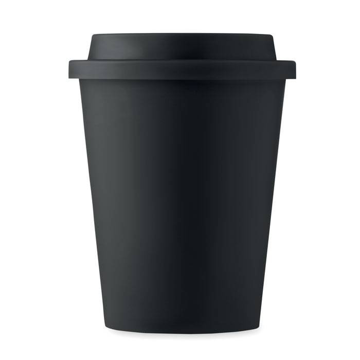 Drinkbeker van PP kunststof en dubbelwandig uitgevoerd. Deze handige reisbeker is voorzien van een drinkopening in de deksel. De hoogte van deze beker is 12 cm. De inhoud is 300 ml. De bekers zijn verkrijgbaar in verschillende kleuren en kunnen wij rondom voor u bedrukken met uw logo in maximaal 1 drukkleur vanaf 50 stuks. Indien u de bekers zonder logo wilt bestellen dan kan dat al vanaf 30 stuks.