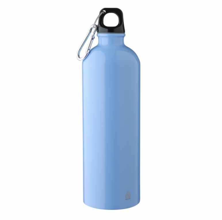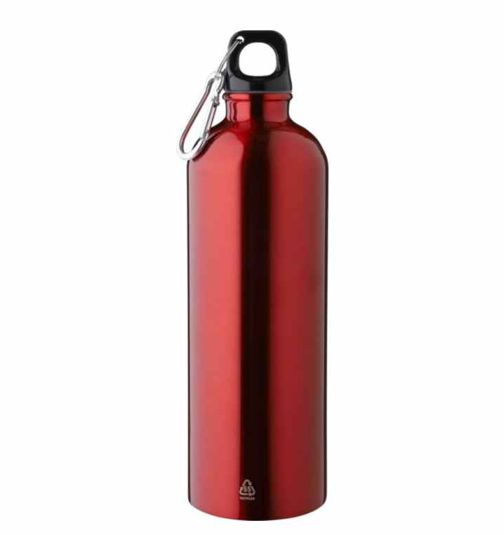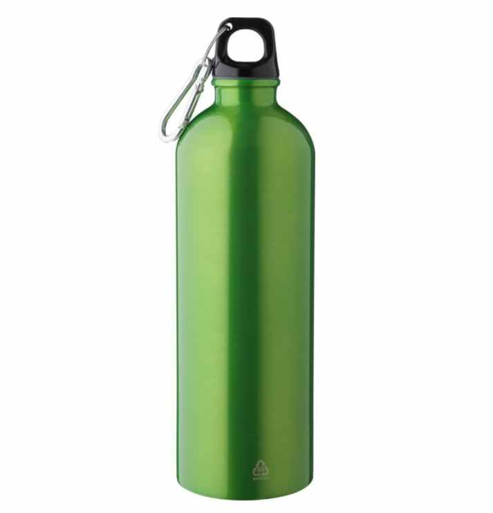 Deze enkelwandige aluminium fles is gemaakt van gerecycled aluminium. De fles heeft een inhoud van 750 ml. De dop is van PP en aan de dop is een karabijnhaak bevestigd. De fles is standaard voorzien van een recycle logo'tje. De fles is geschikt om met de hand af te wassen en niet voor de vaatwasser. We kunnen deze flessen voor u rondom bedrukken in 1- of meerdere drukkleuren. Voor de prijs maakt het niet uit in hoeveel kleuren uw logo gedrukt moet worden. Wanneer u bij uw bestelling dan kiest voor 1 drukkleur en daarna kiest u de drukkleur "full-color" dan drukken wij uw logo in meerdere kleuren terwijl u slechts voor 1 drukkleur betaald. U kunt deze flessen zonder opdruk bestellen vanaf 15 stuks.