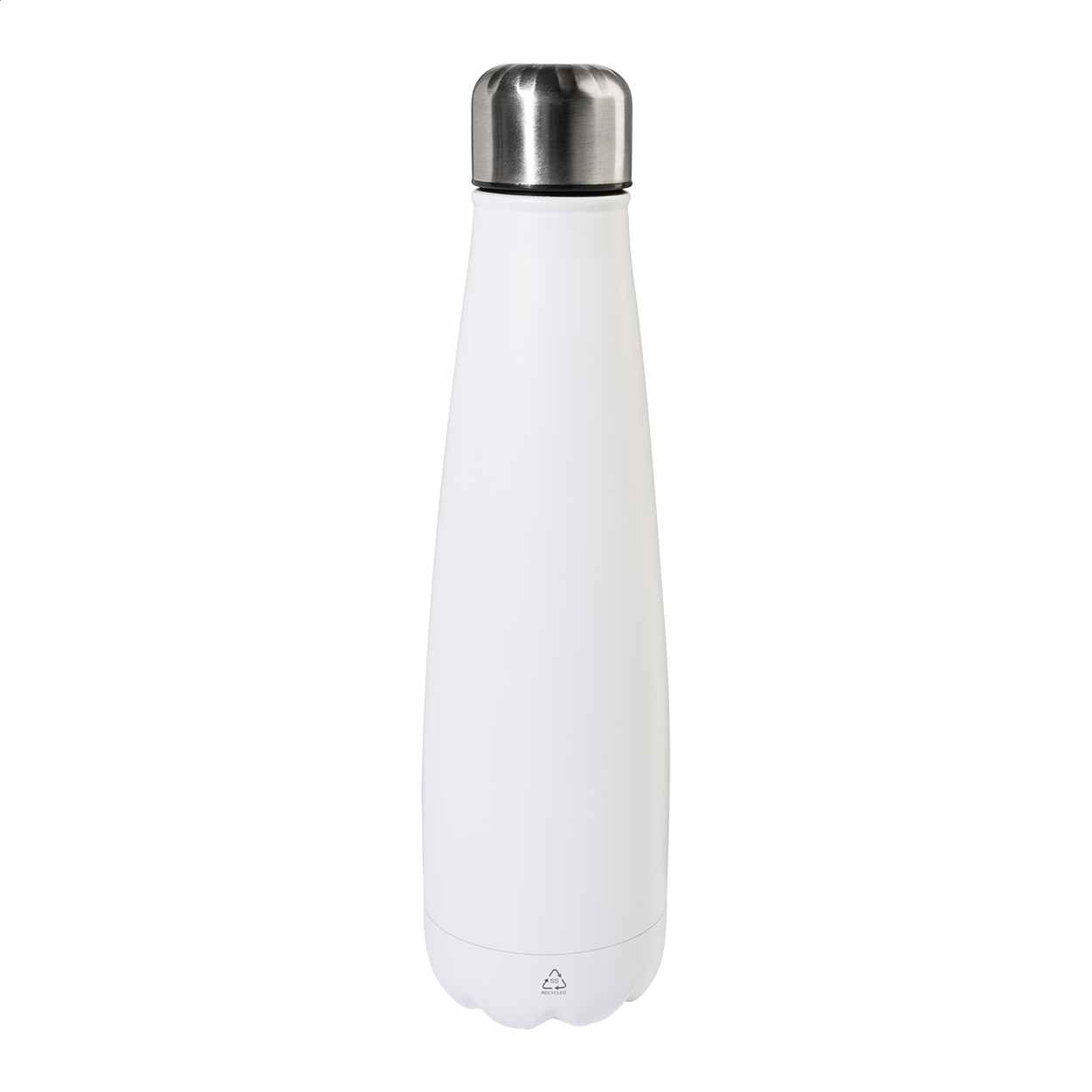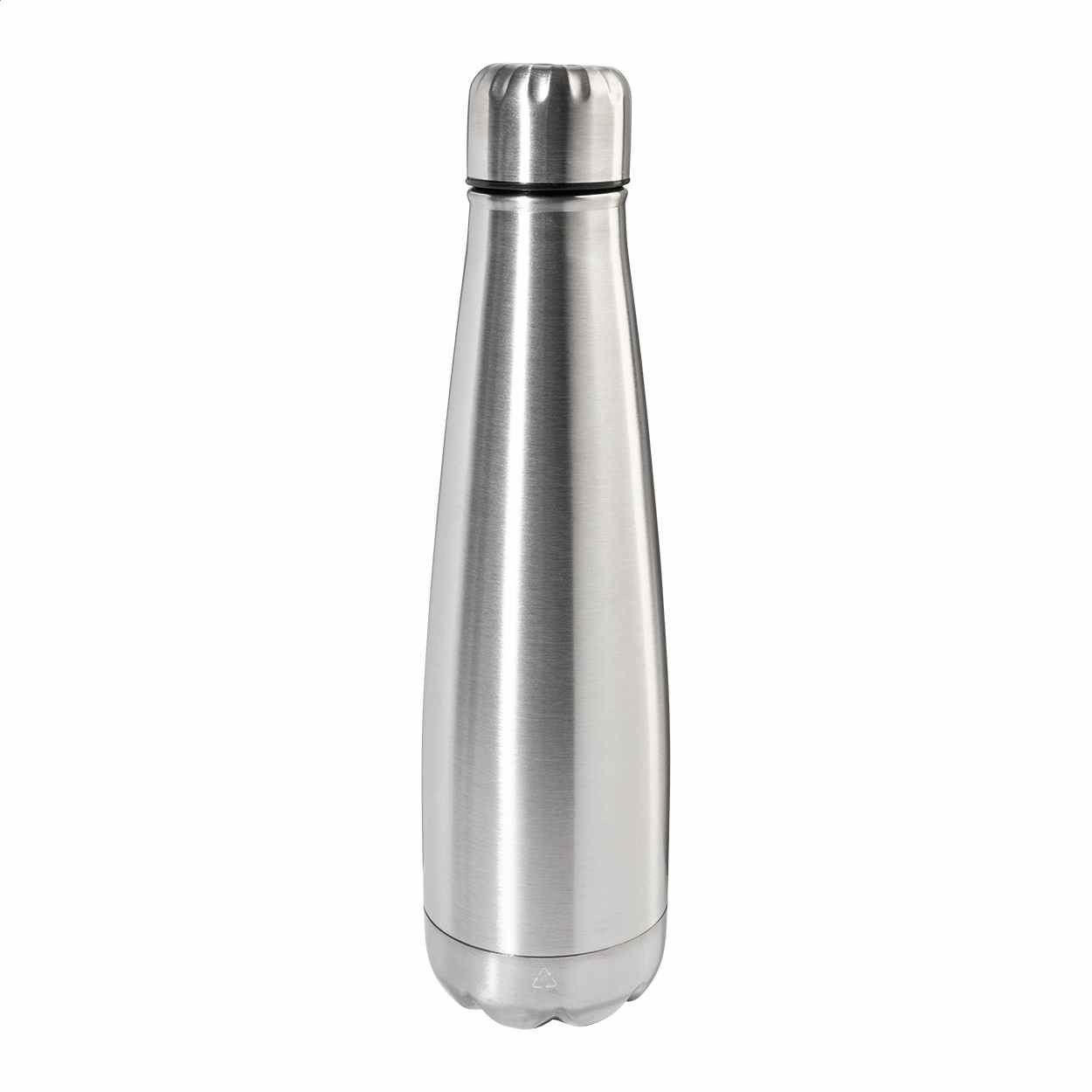 Drinkfles van 600 ml is gemaakt van Gerecycled Roestvrij Staal. De fles heeft standaard een zilverkleurige metalen dop en is spatwaterdicht. De fles is 26 cm hoog en heeft een doorsnede van 70 mm. Wij kunnen uw reclame rondom drukken op deze fles. We kunnen de felssen voor u bedrukken in 1- of meerdere drukkleuren. Voor de prijs maakt het niet uit in hoeveel kleuren uw logo gedrukt moet worden. Wanneer u bij uw bestelling dan kiest voor 1 drukkleur en daarna kiest u de drukkleur "full-color" dan drukken wij uw logo in meerdere kleuren terwijl u slechts voor 1 drukkleur betaald. Indien u de fels zonder opdruk wilt bestellen dan kan dat al vanaf 25 stuks.
