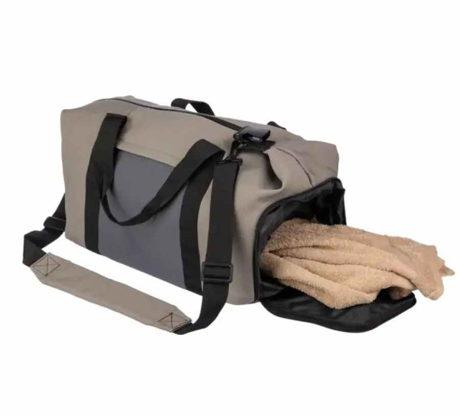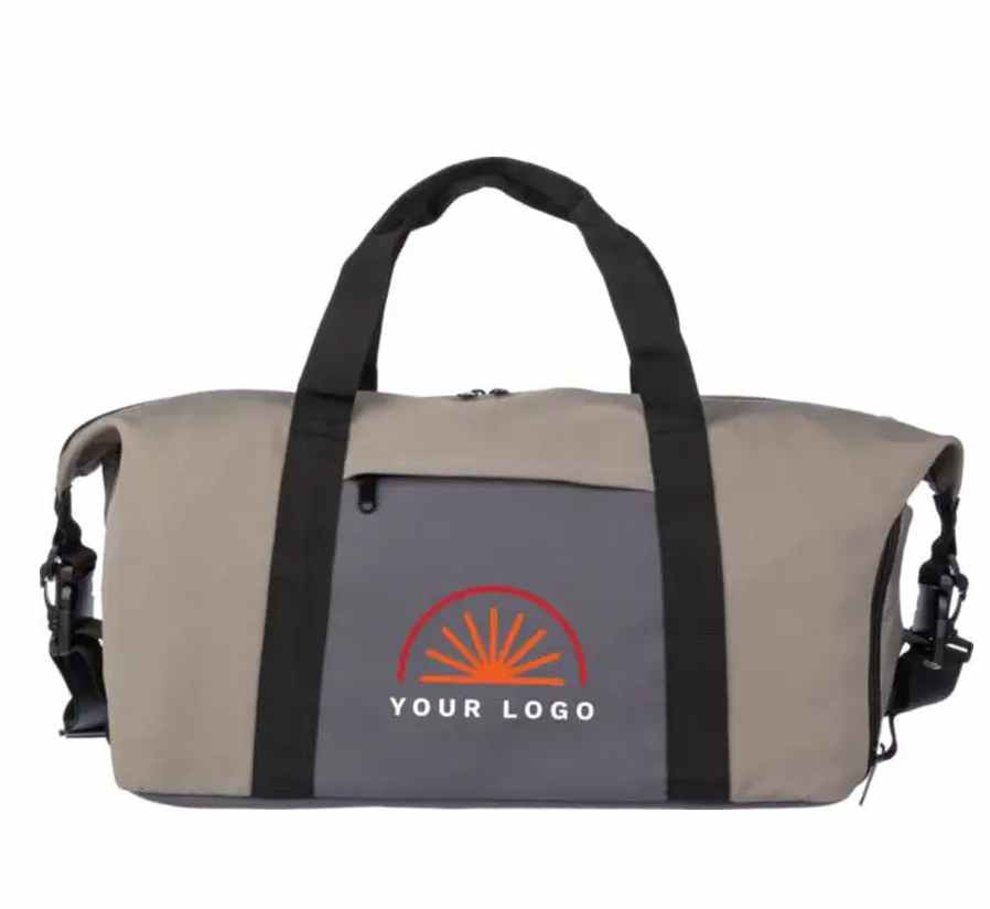 Mooie Duffeltas van 600D Polyester en een 210D PU voering. De bodem van deze tas is van 3 mm Schuim. De tas bevat een groot hoofdvak met een rits en een voorvak die ook met een rits gesloten wordt. Tevens is een schoenenvak aan de zijkant aangebracht. Met korte draaghengsles en een verstelbare schouderband. We kunnen deze tas voor u bedrukken met uw logo in maximaal 2 kleuren. Indien u de tas zonder opdruk wilt bestellen dan kan dat al vanaf 5 stuks.