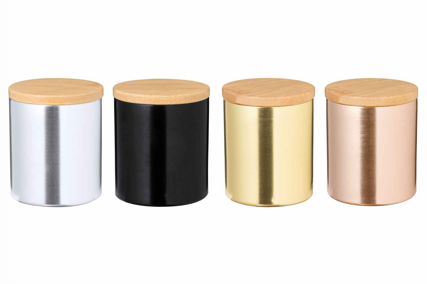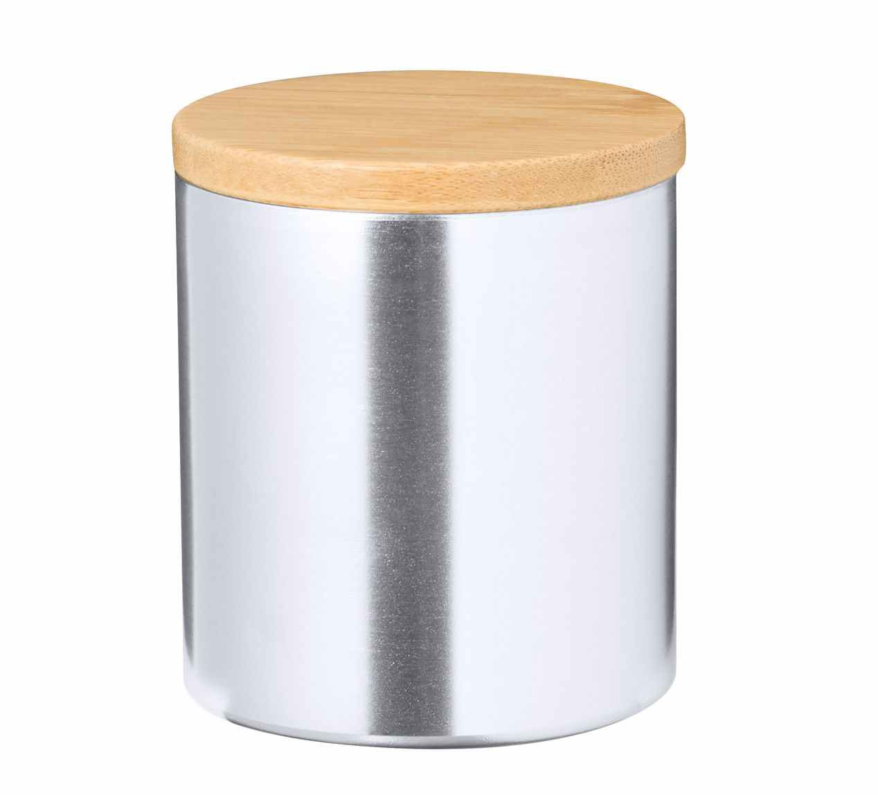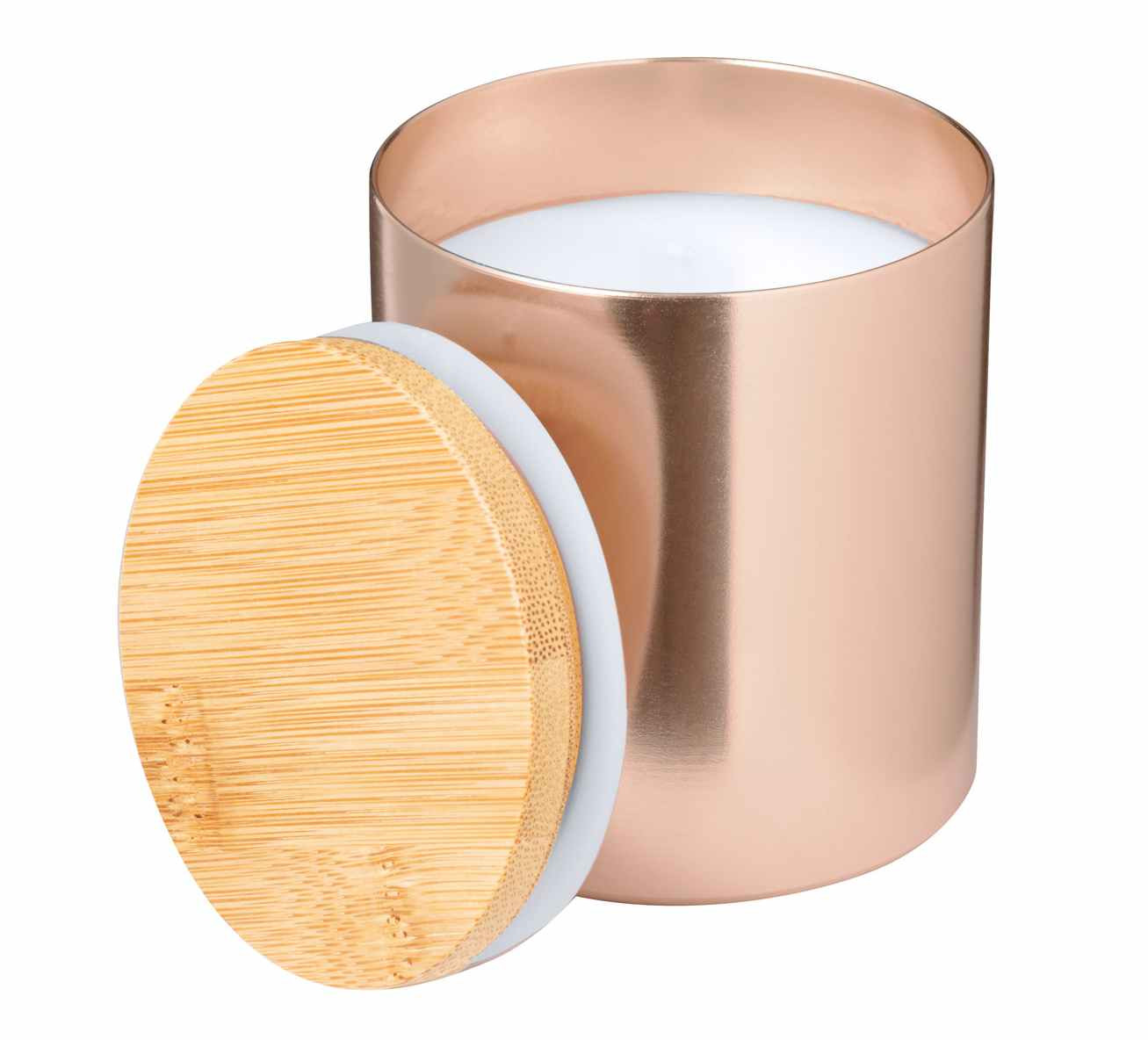 Geurkaars met bamboe deksel in een mooi vormgegeven metalen (aluminium) houder. De geur is Vanille. De afmeting van het blikje is 65 mm doorsnede en 75 mm hoog. Uw logo kunnen wij voor u aanbrengen op de metalen houder d.m.v. een lasergravure. U kunt deze leuke kaarsjes ook zonder uw gravure bestellen. Dit kan dan al in de kleine oplage vanaf 25 stuks. U mag binnen uw bestelling dan de verschillende kleuren mixen.