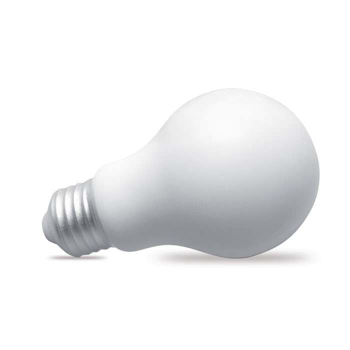 Anti-stress item in de vorm van een ouderwetse gloeilamp. Uw logo kunnen wij aanbrengen op de witte bol van de lamp. Uw logo wordt dan door middel van een laserstaal verdiept aangebracht in de witte bol van de lamp. We kunnen deze gloeilampen eventueel zonder opdruk aan u leveren vanaf 50 stuks. :