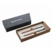 Mooie pennenset van het merk André Philippe. De pennenset bestaat uit een balpen en een rollerbal. De elegante pennen zijn verpakt in een fraai kado-doosje. De pennen kunnen wij van uw logo voorzien d.m.v. een lasergravure op het metalen gedeelte naast de clip. We kunnen de pennen ook eventueel in kleur drukken. Indien u het in kleur gedrukt wilt hebben, dan kunt u dat aan ons laten weten. Dit relatiegeschenk kunnen wij eventueel ook van individuele namen voorzien. Dit maakt dit geschenk nog persoonlijker! Indien u hiervan gebruik wilt maken dan kunt u dat melden bij uw bestelling in de kolom "opmerkingen". Wij nemen dan contact met u op om de mogelijkheden met u te bespreken. Indien u deze pennenset zonder opdruk wilt bestellen dan kan dat ook al in de kleine oplage van 10 stuks.