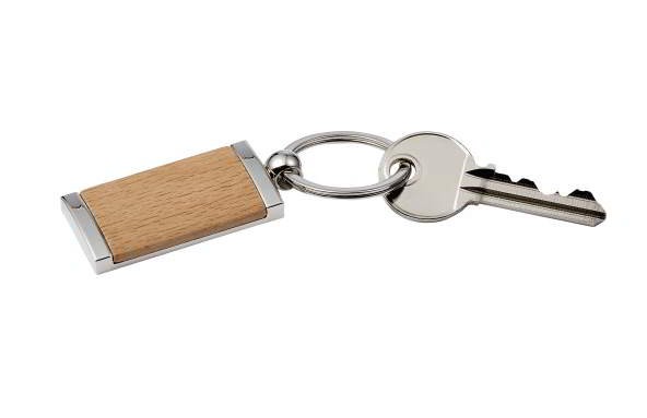 Houten en Metalen sleutelghanger. Deze sleutelhanger is zeer luxe uitgevoerd. Aan de ene zijde is hout en aan de andere zijde metaal. Deze sleutelhangers zitten per stuk verpakt in een polybag. We kunnen uw logo fraai aanbregen op deze luxe sleutelhangers.