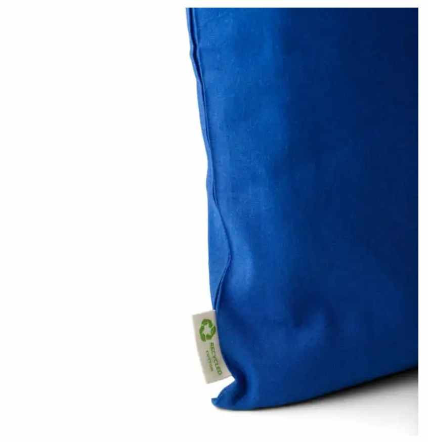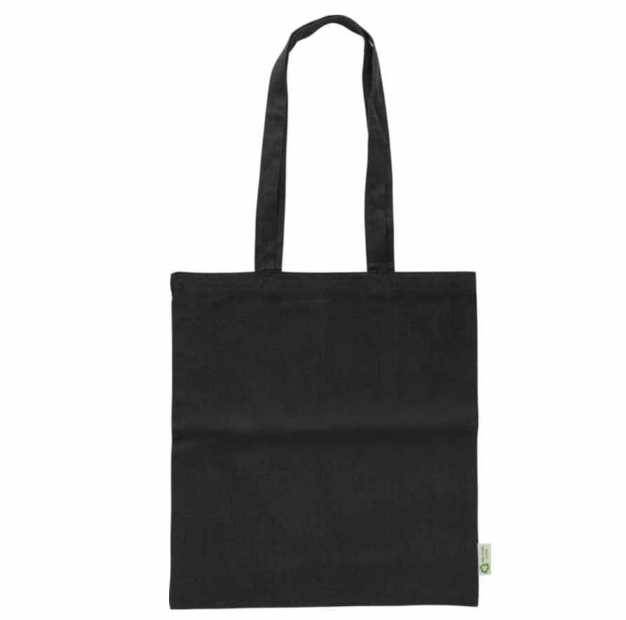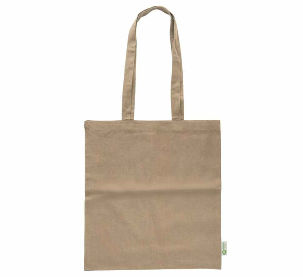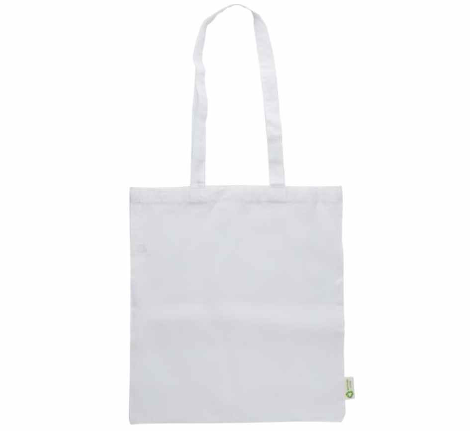 Katoenen tas die is vervaardigd van 100% gerecycled katoen. De katoen kwaliteit is 120 grams. De tas heeft lange draaghengsels. De afmeting van de tas is 41 x 38 cm. Aan iedere tas zit een label gestikt met het recycle-logo. Deze draagtassen kunnen wij voor u bedrukken met uw logo. Mocht u deze toch liever zonder opdruk willen bestellen dan is de minimale afname ook 50 stuks.