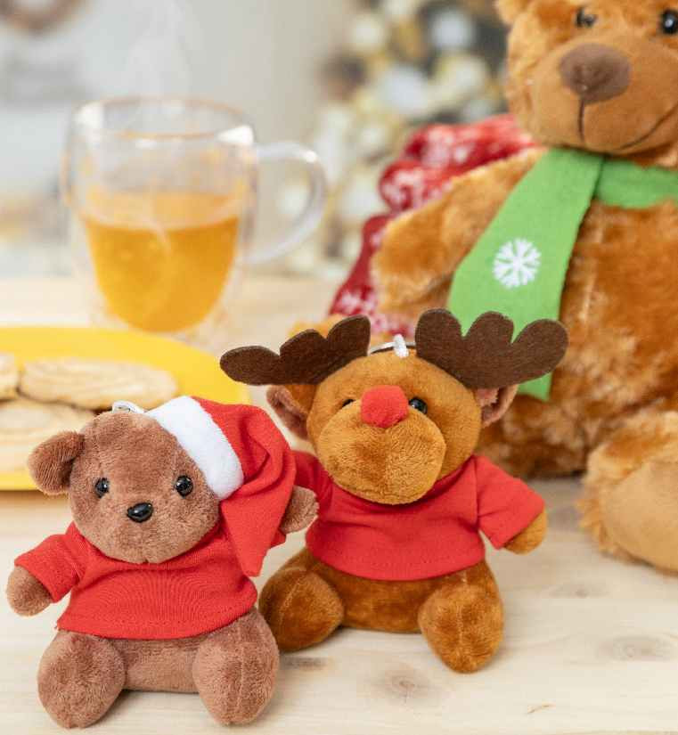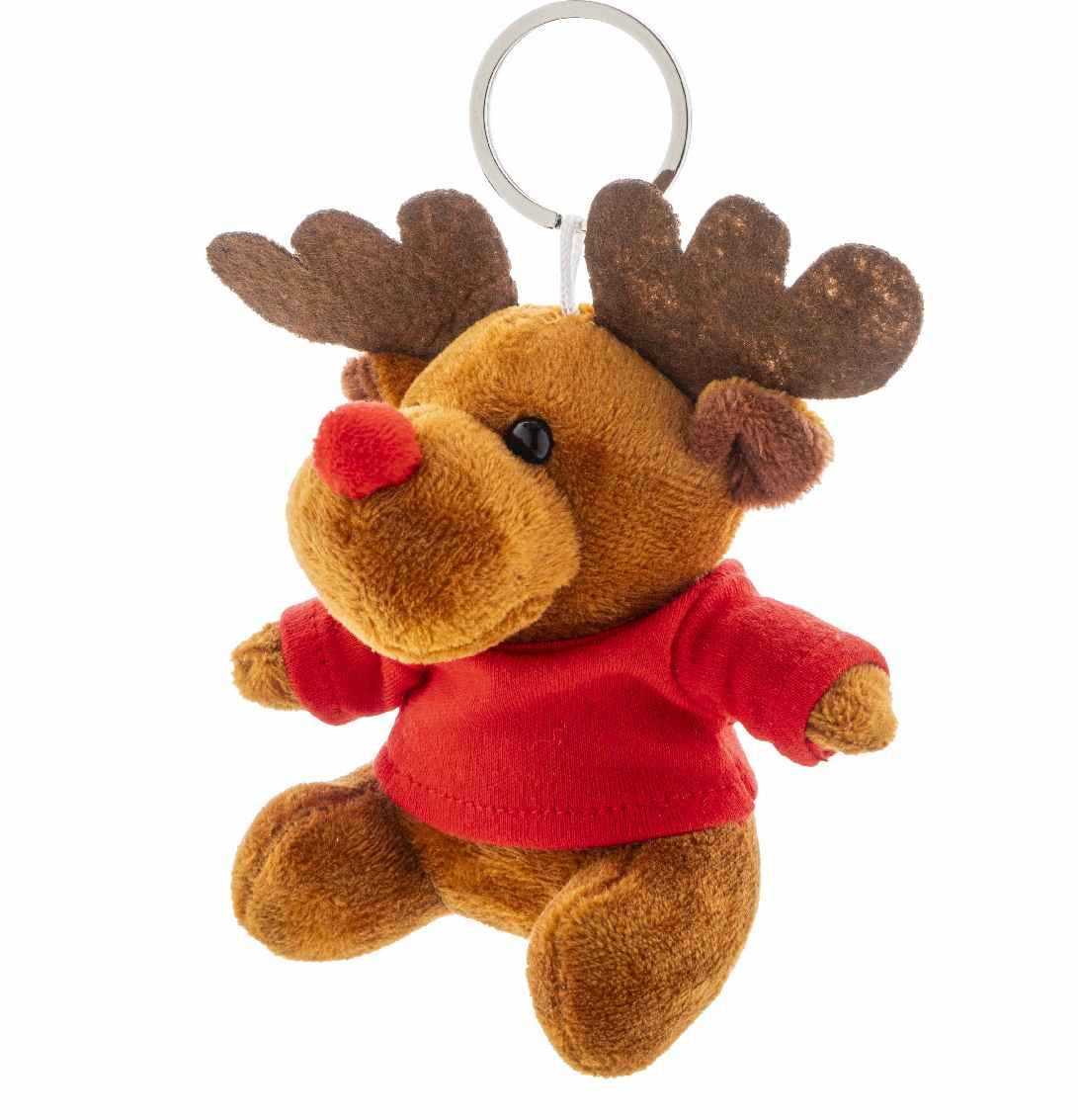 Pluche sleutelhanger in de vorm van een Rendier met een rode trui. Deze sleutelhanger heeft een afmeting van 80 x 60 x 95 mm. Wij kunnen uw logo drukken op de borst van het truitje. U kunt deze leuke sleutelhangers ook zonder uw opdruk bestellen. De minimale afname zonder opdruk is dan 50 stuks.