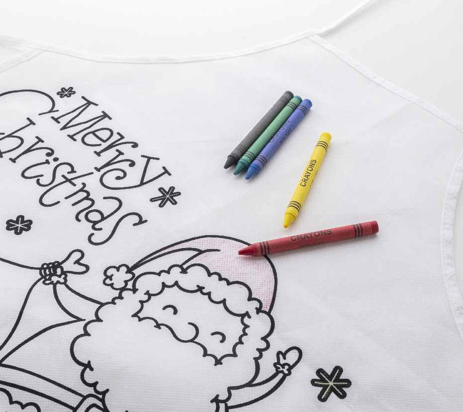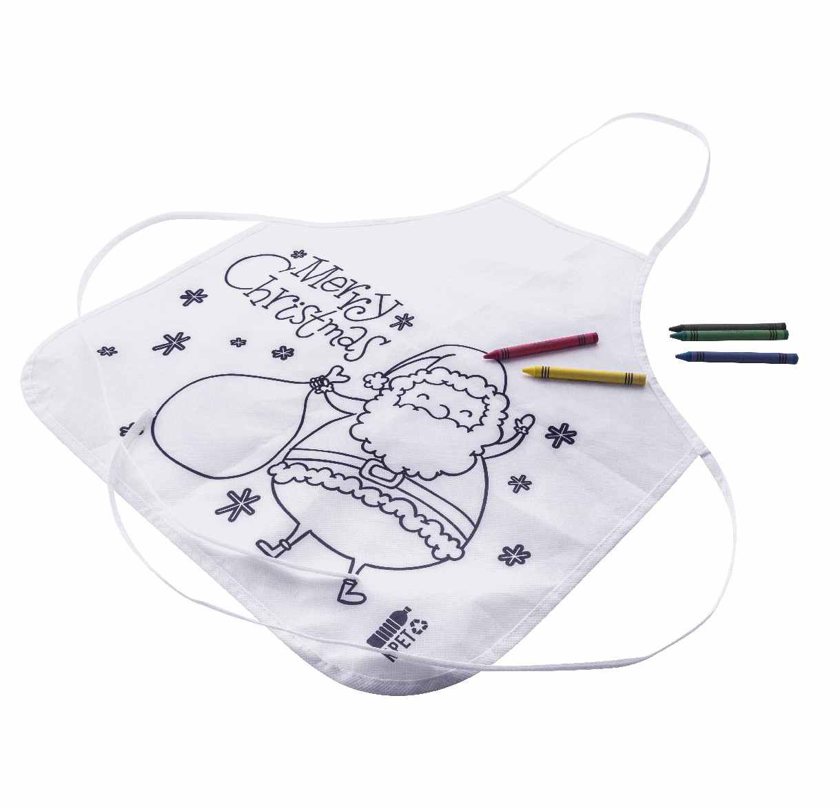 Voor de allerkleinsten is dit leuke schort met een kleurplaat om zelf te kleuren. Het kleuen wordt extra gemakkelijk omdat u de 5 kleurkrijtjes er gratis bij krijgt. Dit witte schort met kerstmotief is van RPET NonWoven materiaal. RPET is een materiaal dat is gemaakt van oude PET-flessen. Hier wordt een garen van gesponnen en daar is dan dit artikel weer van gemaakt. Dit maakt dit artikel een echt duurzaam artikel. We kunnen het schort voor u bedruken met uw tekst en/of logo. U kunt de schorten bestellen vanaf 100 stuks. Indien u de schorten liever zonder uw logo opdruk besteld dan kan dat ook.