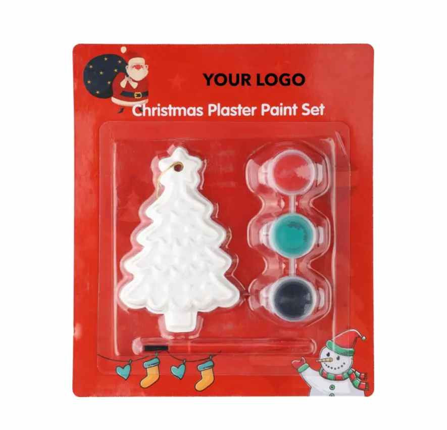 Een leuk schilderpakket voor de kinderen. Deze Kerstboom is van Gips en wordt geleverd met een kwast en 3 potjes acrylverf. (Zwart, Groen en Rood) De kestboom is voorzien van een gaatje met een koordje. Erg leuk om dan in de kerstboom te hangen. dit schilderssetje is per stuk verpakt op kaart met een transparante blister. Uw logo en/of tekst kunnen wij aanbrengen boven op de verpakking door middel van een full-color sticker. We kunnen de sticker voor u maken in 1- of meerdere drukkleuren. Voor de prijs maakt het niet uit in hoeveel kleuren uw logo gedrukt moet worden. Wanneer u bij uw bestelling dan kiest voor 1 drukkleur en daarna kiest u de drukkleur "full-color" dan drukken wij uw logo in meerdere kleuren terwijl u slechts voor 1 drukkleur betaald. U kunt dit leuke kerst geschenkje ook zonder opdruk bestellen. De minimale afname is dan 50 stuks.