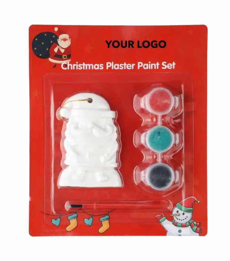 Een leuk schilderpakket voor de kinderen. Deze Kerstman is van Gips en wordt geleverd met een kwast en 3 potjes acrylverf. (Zwart, Groen en Rood) De kestboom is voorzien van een gaatje met een koordje. Erg leuk om dan in de kerstboom te hangen. dit schilderssetje is per stuk verpakt op kaart met een transparante blister. Uw logo en/of tekst kunnen wij aanbrengen boven op de verpakking door middel van een full-color sticker. We kunnen de sticker voor u maken in 1- of meerdere drukkleuren. Voor de prijs maakt het niet uit in hoeveel kleuren uw logo gedrukt moet worden. Wanneer u bij uw bestelling dan kiest voor 1 drukkleur en daarna kiest u de drukkleur "full-color" dan drukken wij uw logo in meerdere kleuren terwijl u slechts voor 1 drukkleur betaald. U kunt dit leuke kerst geschenkje ook zonder opdruk bestellen. De minimale afname is dan 50 stuks.