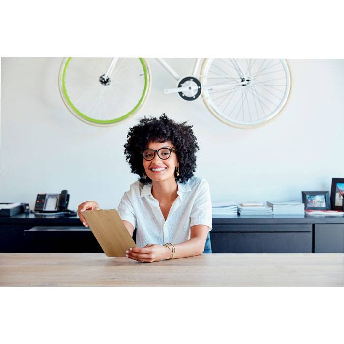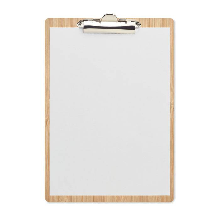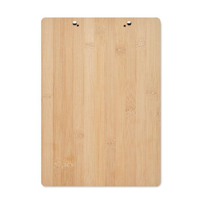 Bamboe Klembord in voor A4 formaat. Dit klembord is perfect toepasbaar voor bijvoorbeld uw menukaart. Het klembord is gemaakt van Bamboe. Bamboe is een snelgroeiende houtsoort. Het gebruik van dit materiaal is daarom extra duurzaam. Omdat bamboe een natuurproduct is kunnen artikelen onderling van elkaar verschillen. We kunnen het klembord voor u voorzien van uw logo d.m.v. een lasergravure. U kunt deze klemborden ook zonder logo bestellen. de minimale afname is dan 15 stuks.