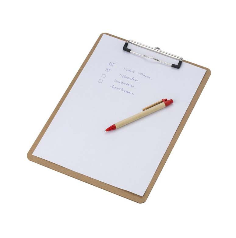 Klembord van hout (MDF) in A4 formaat. De toepassing voor dit klembord kunt u vast zelf wel verzinnen. We kunnen deze klemborden voor u bedrukken met uw logo vanaf 100 stuks. Zonder opdruk kunt u deze al bestellen vanaf 50 stuks.