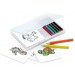 Kleurset voor de kinderen. Deze set bestaat uit 8 houten kleurpotloden en 20 kleurplaten. Dit alles in een trasparant doosje.
