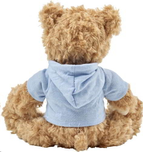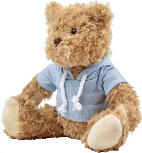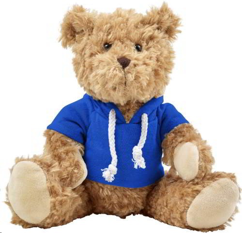 Leuke Pluche Knuffelbeer. Voorzien van veilige geborduurde ogen. Deze teddybeer draagt een gekleurde hoodie. Deze hoodie is altijd voorzien van een wit koord. We kunnen de hoodie bedrukken met uw logo en/of tekst.