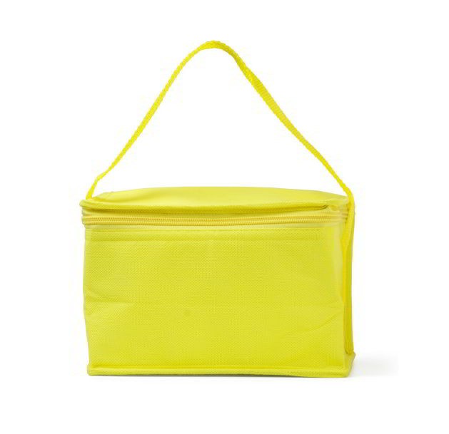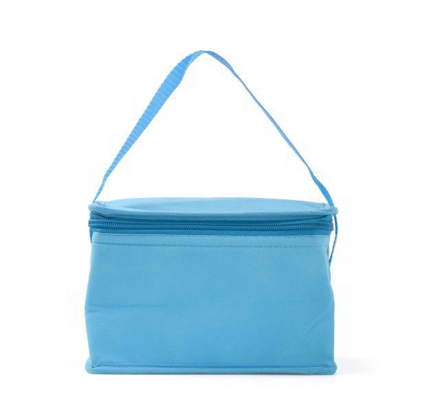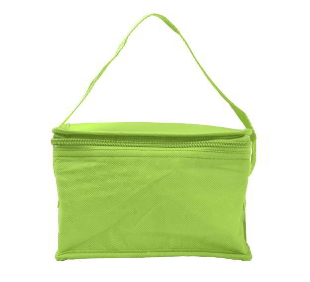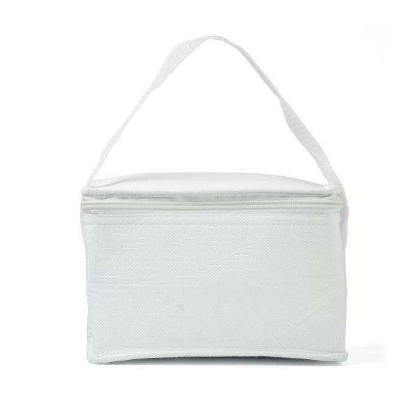 Koeltas van Non Woven materiaal (Non Woven is geperst textiel). Deze Koeltasjes zijn geschikt voor 6 blikjes. De binnenzijde is voorzien van reflecterend materiaal wat er voor zorgt dat uw eten of drinken langer koel blijft. Door het handige formaat (20 x 12,5 x 13 cm) zijn deze Koeltassen handig mee te nemen. Uw logo bedrukken wij op het deksel van de Koeltas.