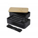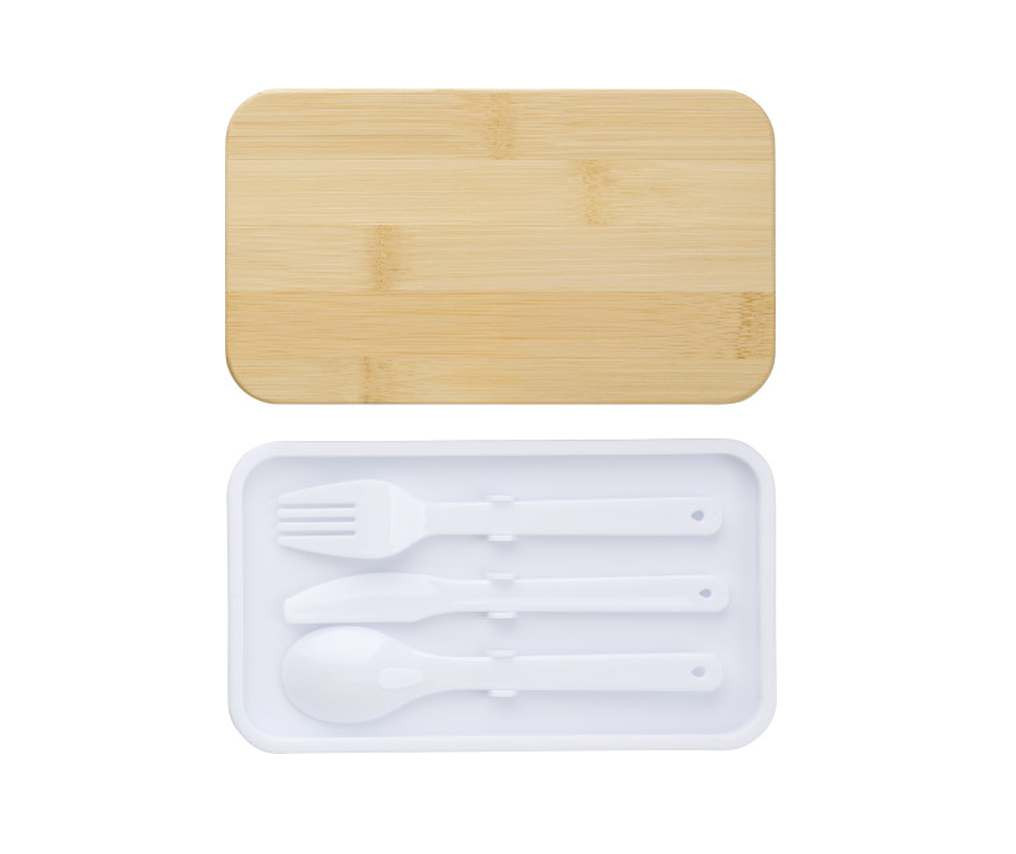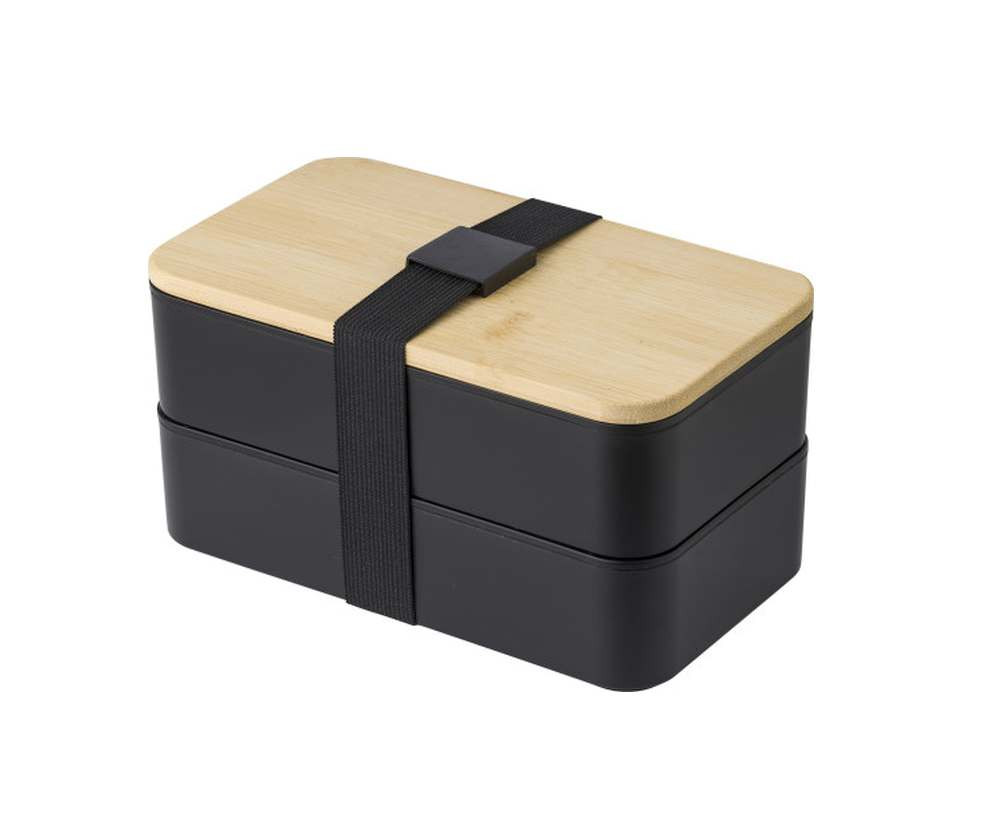 Broodtrommel / Lunchbox waar serieus iets in kan. Deze extra grote broodtrommel bevat 2 lagen en meerder compartimenten. De afmeting is 18,5 x 10,5 x 9,5 cmHet deksel is van bamboe en wordt gesloten door een strak elastieken band. Er wordt kunststof bestek meegeleverd. (Vork, Mes en Lepel) Uw logo kunnen wij door middel van een laser graveren op het houten deksel. Wilt u liever zonder uw logo bestellen? dat kan dan al vanaf 10 stuks.
