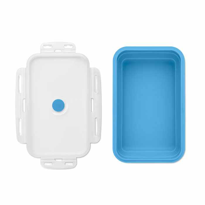 Deze lunchbox is extra handig omdat deze inklapbaar is. De lunchbox is gemaakt van siliconen materiaal met een kunststof PP deksel. de lunchbox heeft een afmeting van 21 x 13 x 7 cm en heeft een inhoud van ca 1200 ml. Heeft u uw lunch op? dan neemt uw lunchbox weinig plaats in in uw tas. Uw logo kunnen wij drukken op het deksel. De lunchbox kunt u ook onbedrukt bestellen vanaf 12 stuks.