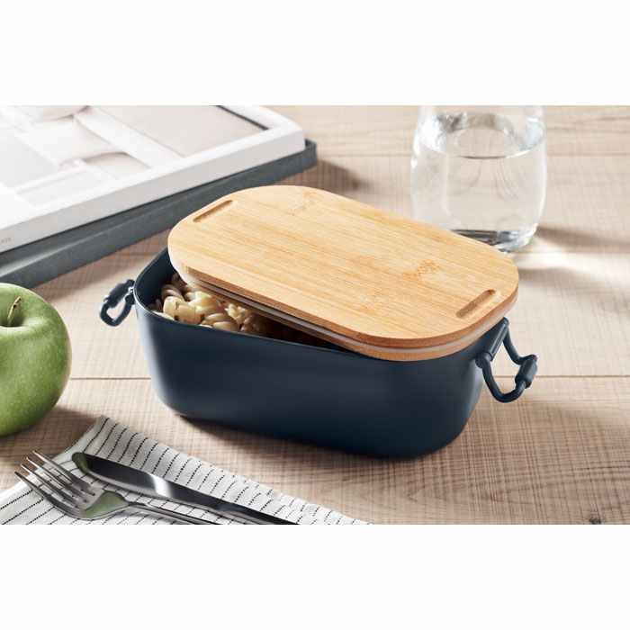 Deze lunchbox is van PP kunststof met aan beide zijden een sluiting. Het deksel is van Bamboe. De lunchbox heeft een afmeting van 18 x 10,5 x 7 cm. De inhoud is ca. 700 ml. We kunnen uw logo lasergraveren op het deksel. Indien u deze lunchboxen zonder opdruk wilt bestellen dan kan dat al vanaf 12 stuks.