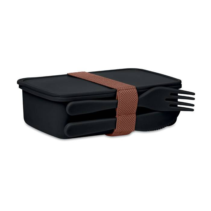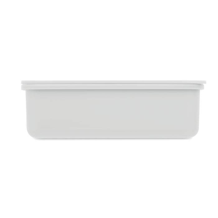 Deze lunchbox wordt standaard geleverd met kunststof bestek. (mes en vork) Met een inhoud van ca. 700 ml is deze lunchbox groot genoeg om een volledige lunch mee te nemen. Afmeting van de broodtrommel/Lunchbox is 16 x 11 x 5 cm Het sluitelastiek zorgt er niet alleen voor dat uw bestek op zijn plaats blijft maar sluit het deksel ook nog eens extra af. De lunchbox kunnen wij voor u bedrukken met uw logo op het deksel. Dit doen wij al vanaf 50 stuks. Indien u deze broodtrommels zonder opdruk wilt bestellen dan kan dat vanaf 20 stuks. U mag de kleuren dan mixen.