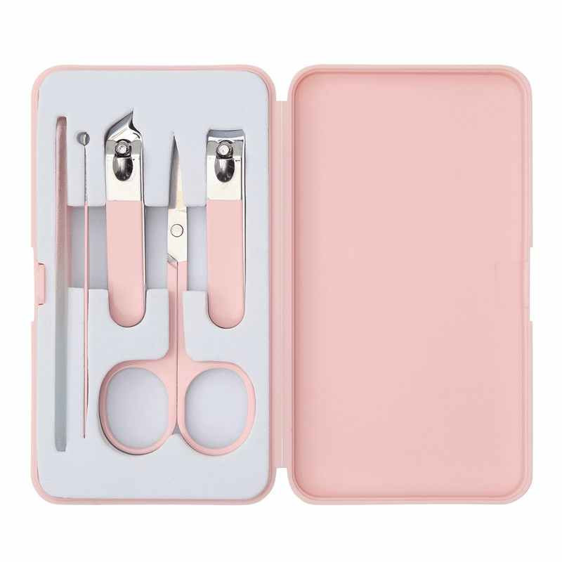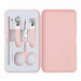 Complete Manicureset in een mooi stevig doosje. Afmeting doosje: 11,8 x 6,7 x 2,1 cm Deze manicureset bestaat uit 2 metalen nagelknippers, een schaartje van Roestvrijstaal en een nagelvijl. De set wordt compleet gemaakt door een setje oordopjes. de fraaie verpakking is verkrijgbaar in 2 kleuren; Roze en Zwart. We kunnen uw logo drukken op het deksel. Indien u deze manicuresets liever zonder opdruk besteld dan is de minimale afname 25 stuks.