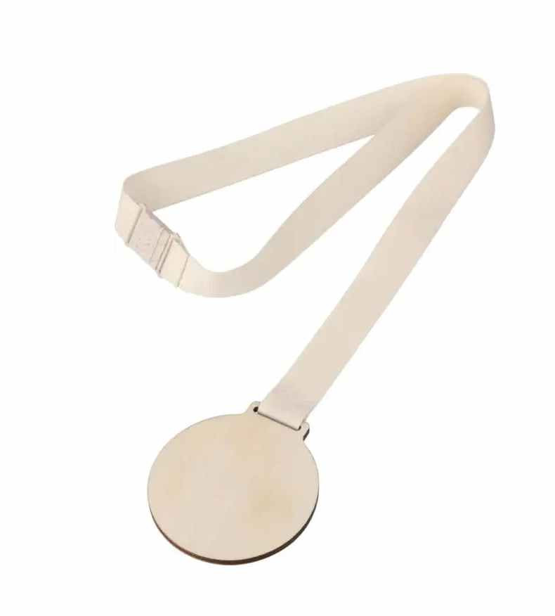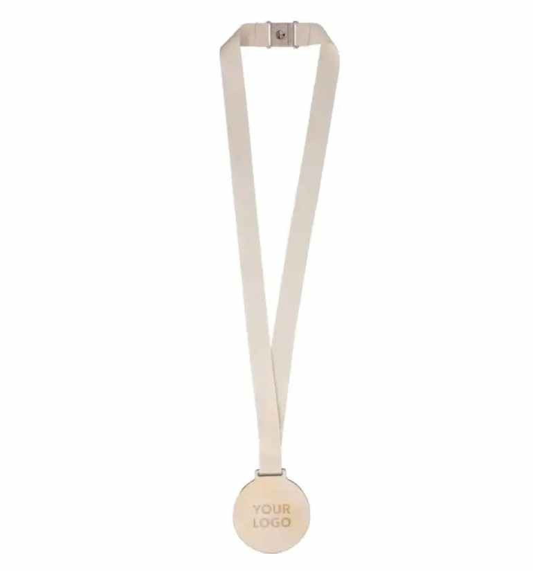Medaille van Hout. Deze medaille is gemaakt vam Lindehout en heeft een diameter van 7 cm en een dikte van 4 mm. Het omhanglint is van katoen. (2 cm breed) en voorzien van een veiligheidssluiting. De sluiting is gemaakt van duurzaam tarwestro en PP. We kunnen deze medaille al in kleine oplage voor u verzorgen (vanaf 100 stuks). Uw logo kunnen wij voor u drukken op het hout in 1- of 2 drukkleuren. Desgewenst kunnen we het logo ook lasergraveren op deze medaille. Uw logo wordt dan met een laserstraal in het hout gebrand. Het omhanglint kunnen wij ook voor u bedrukken. U kunt dan het beste even contact met ons opnemen voor een speciale aanbieding hiervoor.  Indien u de medailles liever zonder opdruk besteld dan kan dat al vanaf 100 stuks.