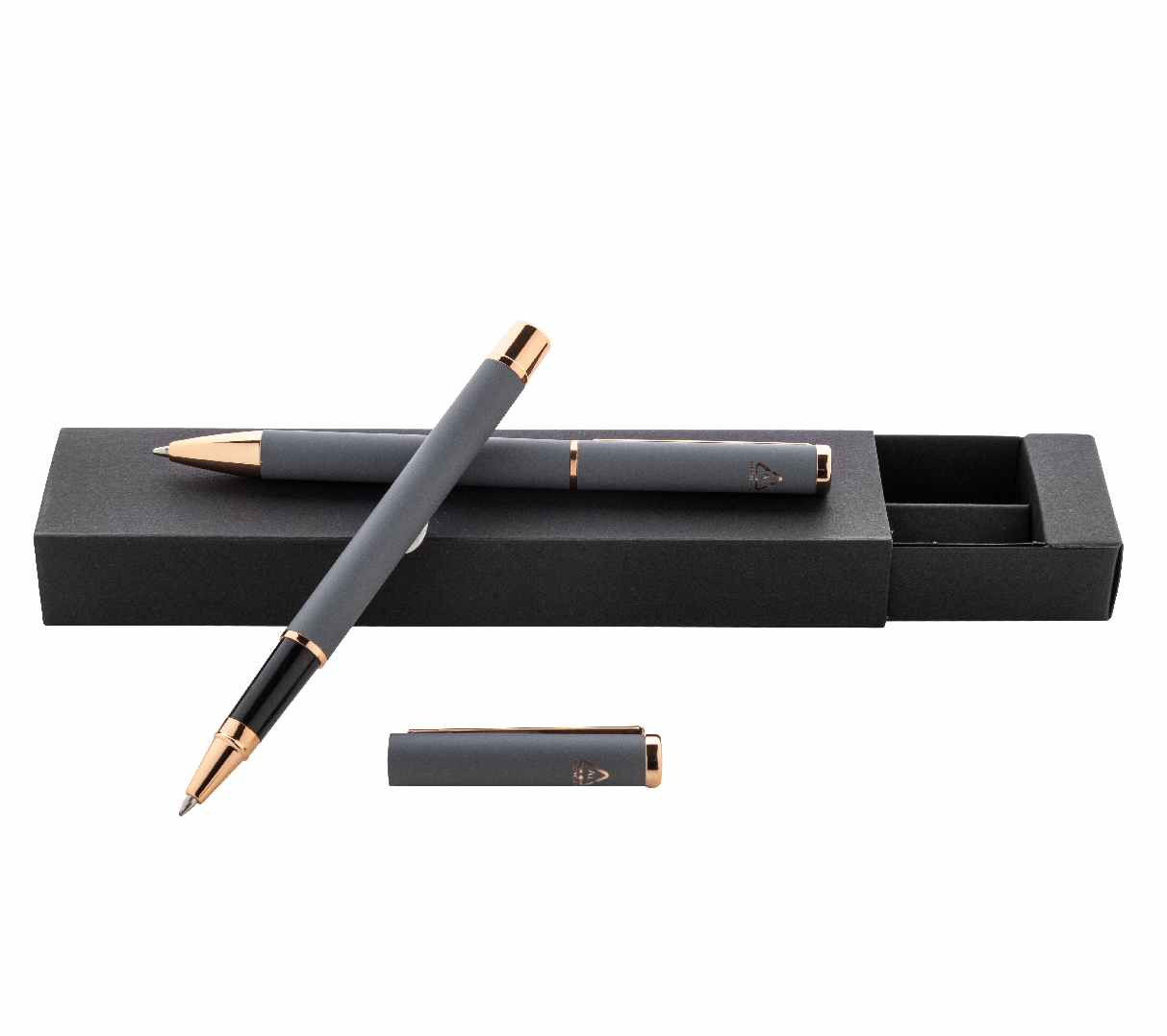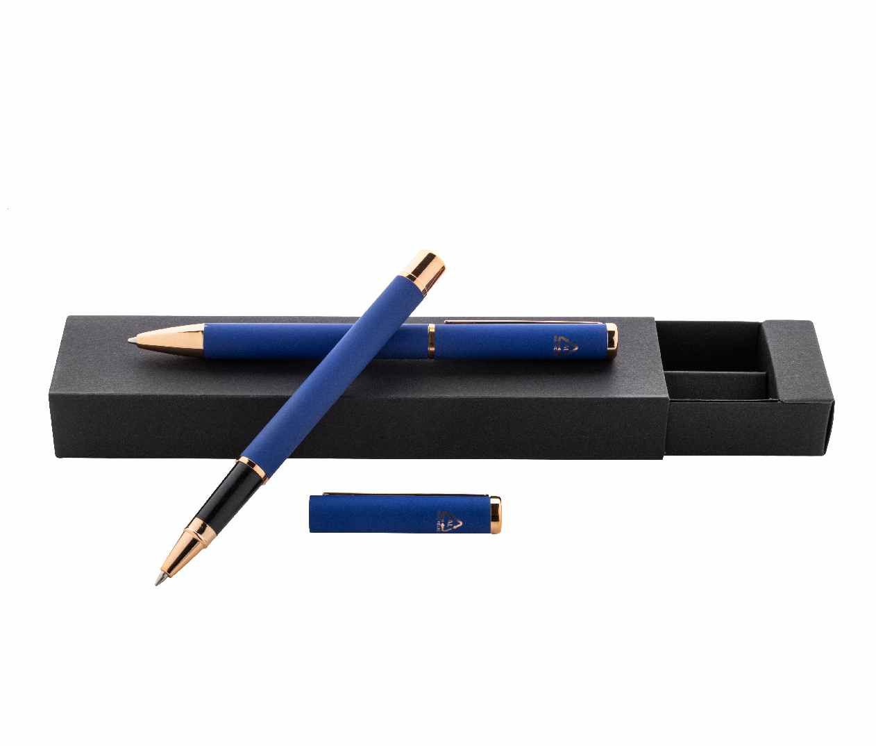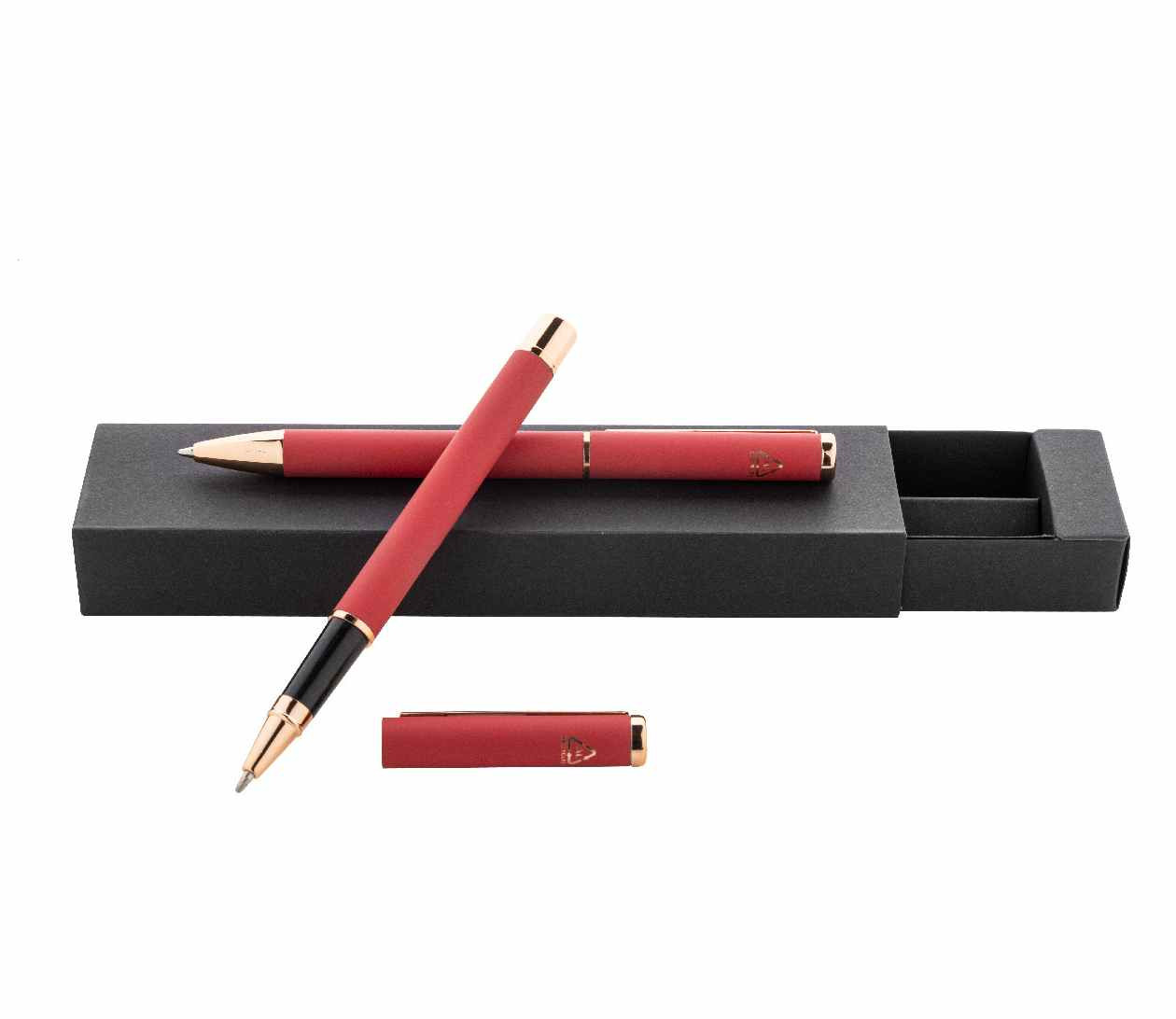 Deze metalen penneset is van gerecycled aluminium en verkrijgbaar in verschillende kleuren. De pennenset bestaat uit een balpen en een rollerbal waarbij de pen is afgewerkt met roségouden details. De pennen zijn verpakt in een zwart geschenkdoosje. Wordt geleverd met blauwe navulling. De pennen kunnen wij van uw logo voorzien d.m.v. een lasergravure op het metalen gedeelte naast de clip. Uw logo wordt dan in de kleur roségoud zichtbaar. We kunnen de pennen ook eventueel in kleur drukken. Indien u het in kleur gedrukt wilt hebben, dan kunt u dat aan ons laten weten. Dit relatiegeschenk kunnen wij eventueel ook van individuele namen voorzien. Dit maakt dit geschenk nog persoonlijker! Indien u hiervan gebruik wilt maken dan kunt u dat melden bij uw bestelling in de kolom "opmerkingen". Wij nemen dan contact met u op om de mogelijkheden met u te bespreken. Indien u deze pennenset zonder opdruk wilt bestellen dan kan dat ook al in de kleine oplage van 10 stuks.