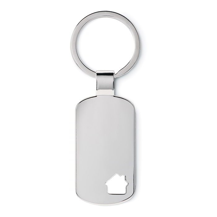 Metalen sleutelhanger waarbij de vorm van een huis is uitgestanst. Uw logo brengen wij aan door middel van een laser gravure. De hieronder vermelde drukprijs is dan ook de prijs voor het graveren van uw tekst en/of uw logo. Deze metalen sleutelhanger leveren wij per stuk verpakt in een geschenkdoosje.
