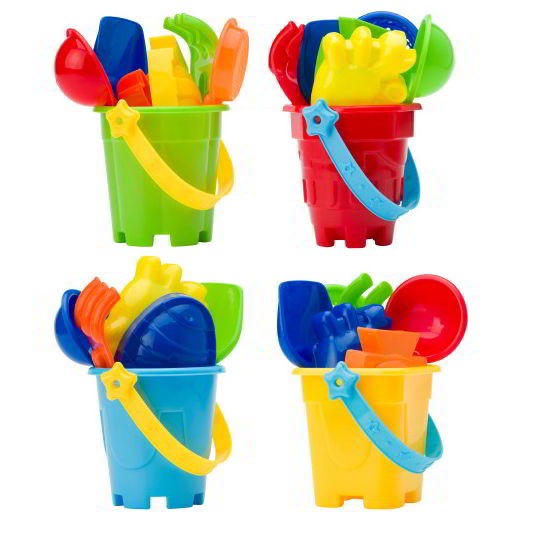 Strandemmertje van kunststof met een hark, schepje, 2 zandvormpjes, lepel en een zeef. Wordt asorti geleverd. Dit strandemmertje zit verpakt in een netje. Let op: afmeting is 9,5 x 6,0 x 15,0 cm. Dit artikel kunnen wij niet bedrukken met uw logo.