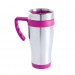 Dubbelwandige Stainless Steel thermobeker. Deze koffiebeker is ideaal voor onderweg. De inhoud is 450 ml. Voorzien van een kunststof handvat in verschillende kleuren. We kunnen de beker van uw logo voorzien d.m.v. een lasergravure op de zijkant van de mok. Indien u de mok zonder opdruk wilt bestellen dan kan dat vanaf 50 stuks.