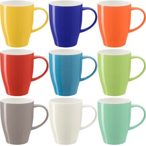 Porseleinen mok in een klassiek model. Inhoud is 370 ml. Deze hoogwaardige mokken zijn leverbaar in heel veel verschillende kleuren. Uw logo kunnen wij drukken op de buitenzijde van de mok. Deze mokken zijn ook zonder opdruk verkrijgbaar vanaf 48 stuks per kleur. Levering vindt uitsluitend plaats in volle dozen van 48 stuks per kleur.