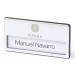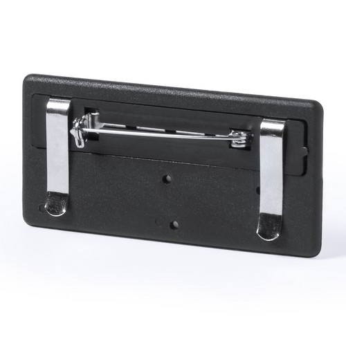 Naambadge van aluminium. Deze luxe badge heeft een afmeting van 6,8 x 3,4 cm. Uw bedrijfsnaam of logo kunnen wij bedrukken op het aluminium deel boven het naamvenster. U kunt de persoonsnaam op het kaartje schrijven. Hierdoor is de badge steeds weer te gebruiken. Bijvoorbeeld op beurzen of andere evenementen. De badge heeft aan de achterzijde een veiligheidsspeld en 2 steekschuiven. U kunt de naambadge dus op 2 manieren bevstigen. Verkrijgbaar vanaf 100 stuks.