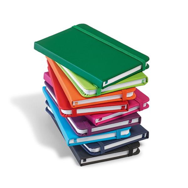 Notitieboek met een harde kaft van imitatie leder A6 formaat. Bevat 96 pagina's gelinieerd papier en is in diverse kleuren verkrijgbaar. Deze leuke en kleurrijke notitiebokjes hebben een afmeting van 9 x 14 x 1,3 cm en een gewicht van 124 gram.  Uw logo en/of reclametekst kunnen wij op de voorzijde bedrukken. Met uw logo op de kaft is dit notitieboekje een leuk relatiegeschenk. We kunnen dit artikel voor u bedrukken in 1- of meerdere drukkleuren. Voor de prijs maakt het niet uit in hoeveel kleuren uw logo gedrukt moet worden. Wanneer u bij uw bestelling dan kiest voor 1 drukkleur en de drukkleur "full-color" dan drukken wij uw logo in meerdere kleuren terwijl u slechts voor 1 drukkleur betaald.  De minimale afname is dan 50 stuks. Indien u de kleuren wilt mixen is de minimale afname per kleur 10 stuks.