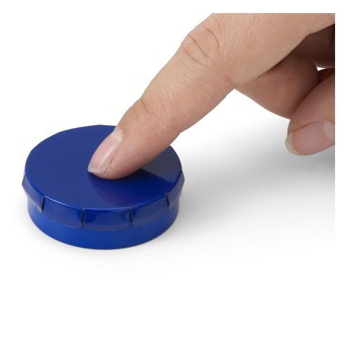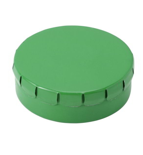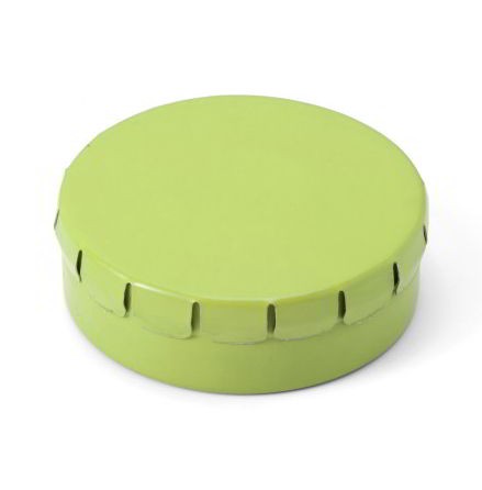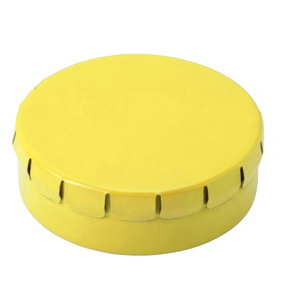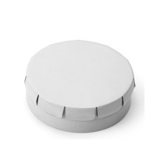 Ronde blikjes met mintjes. Deze blikjes hebben een doorsnede van 4,7 cm en bevatten ca. 60 mintjes. De blikjes zijn voorzien van een clic-clac dekseltje. De blikjes kunnen wij bedrukken op het deksel.
