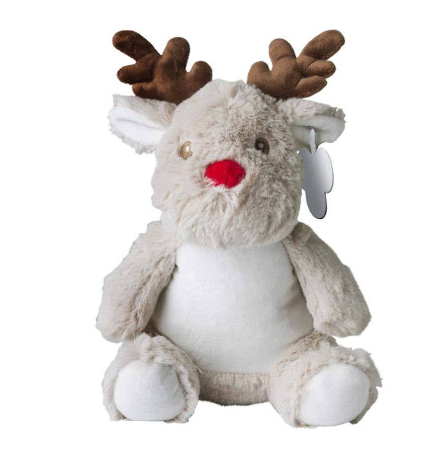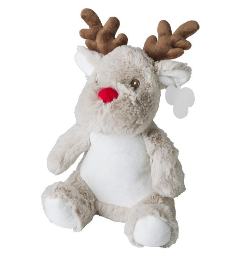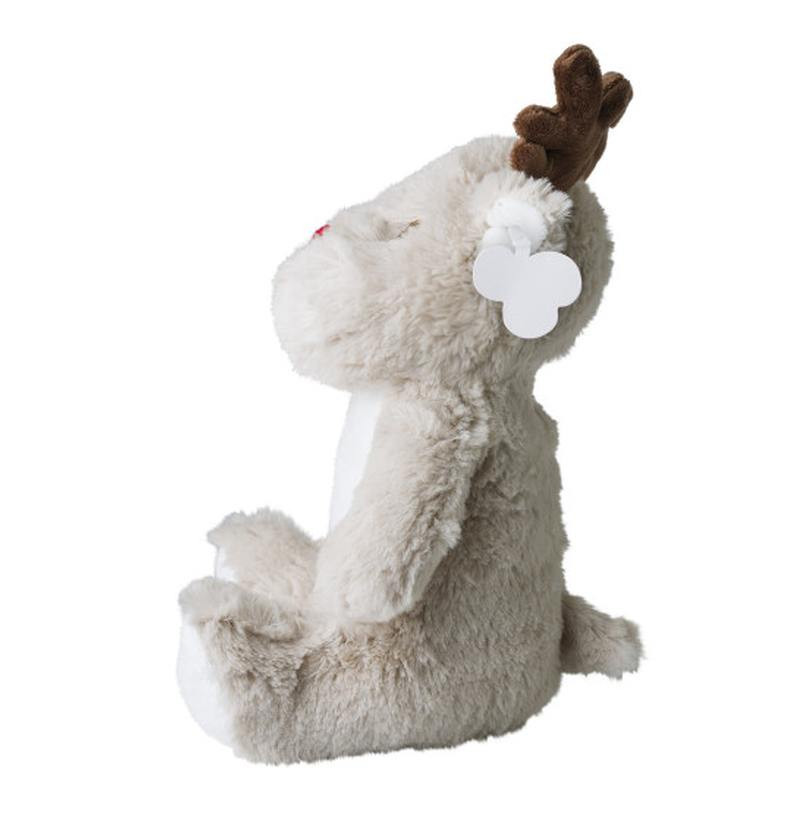 Pluche RENDIER. De oogjes van dit pluche rendier zijn veilig geborduurd. (geen kraaltjes). Aan de rendier zit standaard een kartonnen label. Hierp kunnen wij uw logo drukken in maximaal 2 kleuren. Indien u deze pluche liever zonder opdruk besteld dan kan dat ook. de minimale afname zonder opdruk is 10 stuks.