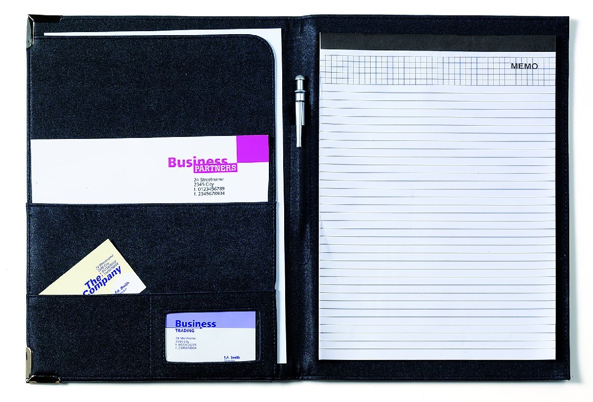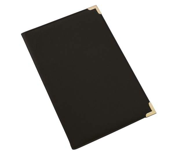 Documentenmap A4 van PU materiaal. Met metalen hoekjes. Excl. schrijfblok.