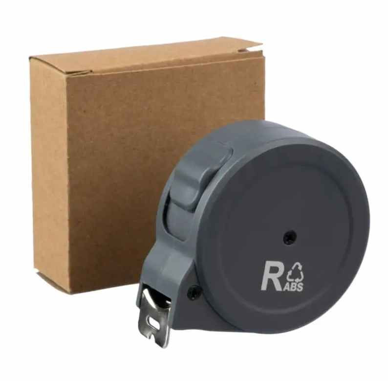Deze rolmaat van 3 meter is gemaakt van gerecycled ABS. Het meetlint heeft een schaalverdeling in cm en inch. Op iedere rolmaat staat standaard het recycle-logo afgebeeld. We kunnen dit artikel voor u bedrukken in 1- of meerdere drukkleuren. Voor de prijs maakt het niet uit in hoeveel kleuren uw logo gedrukt moet worden. Wanneer u bij uw bestelling dan kiest voor 1 drukkleur en daarna kiest u de drukkleur "full-color" dan drukken wij uw logo in meerdere kleuren terwijl u slechts voor 1 drukkleur betaald. Iedere rolmaat wordt per stuk verpakt geleverd in een bruin kartonnen doosje. Uw logo drukken wij op 1 zijde van de rolmaat.  Indien u de rolmaatjes zonder opdruk wilt bestellen dan kan dit al vanaf 25 stuks.