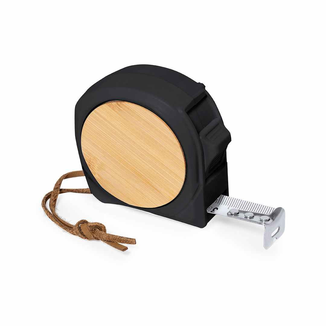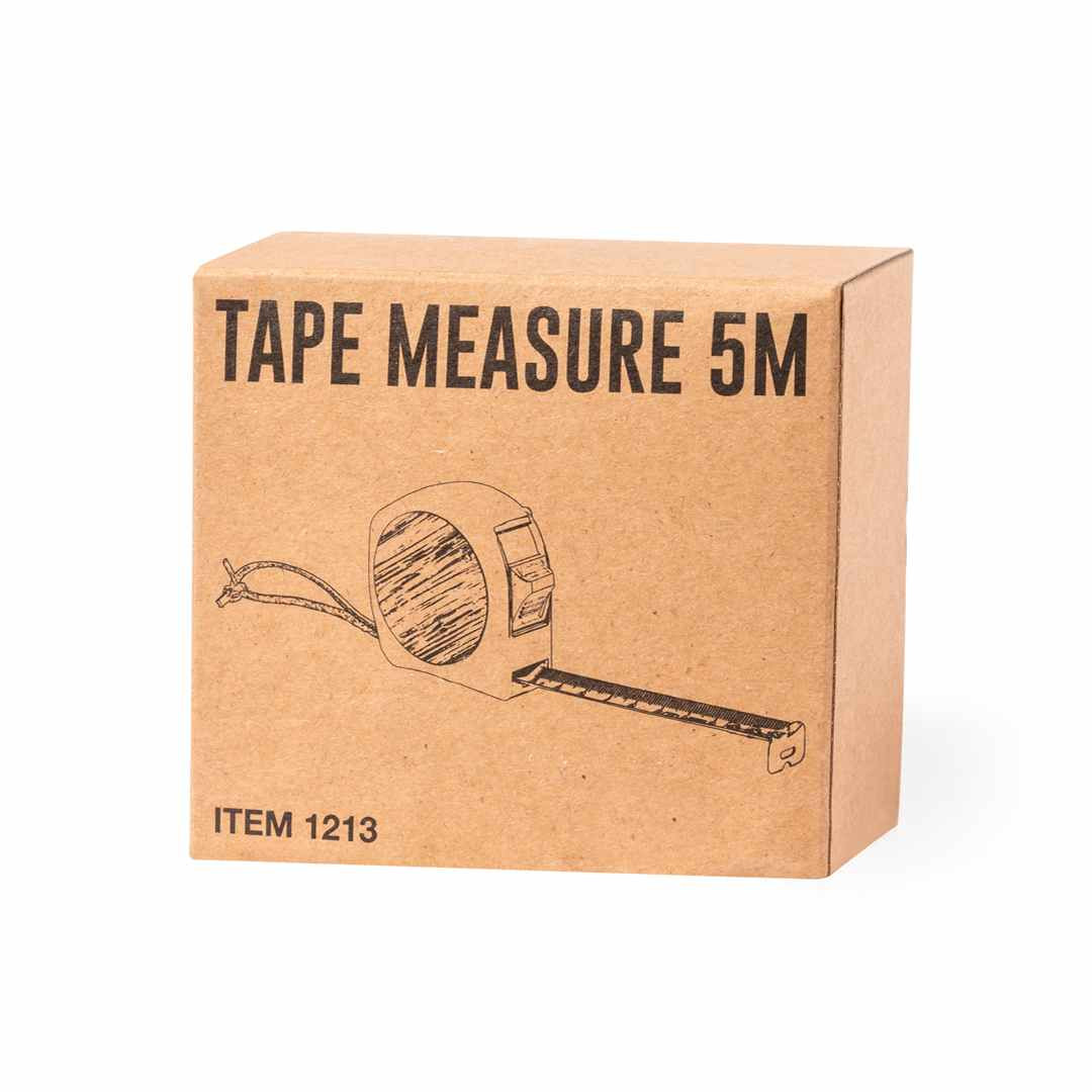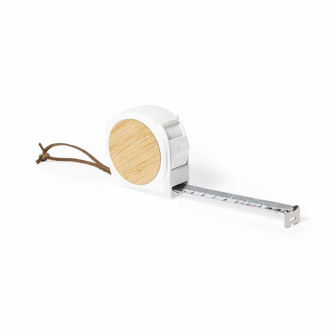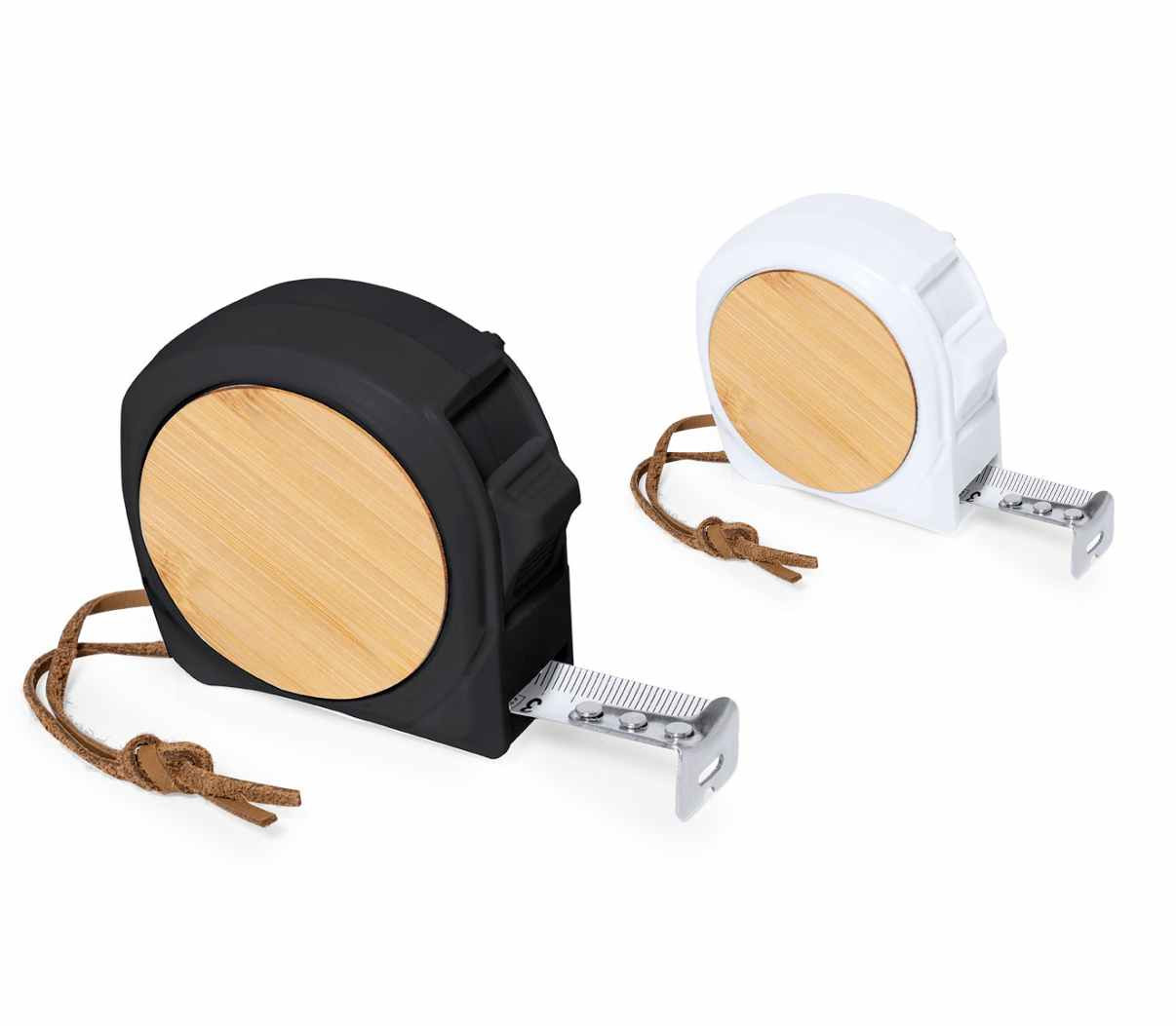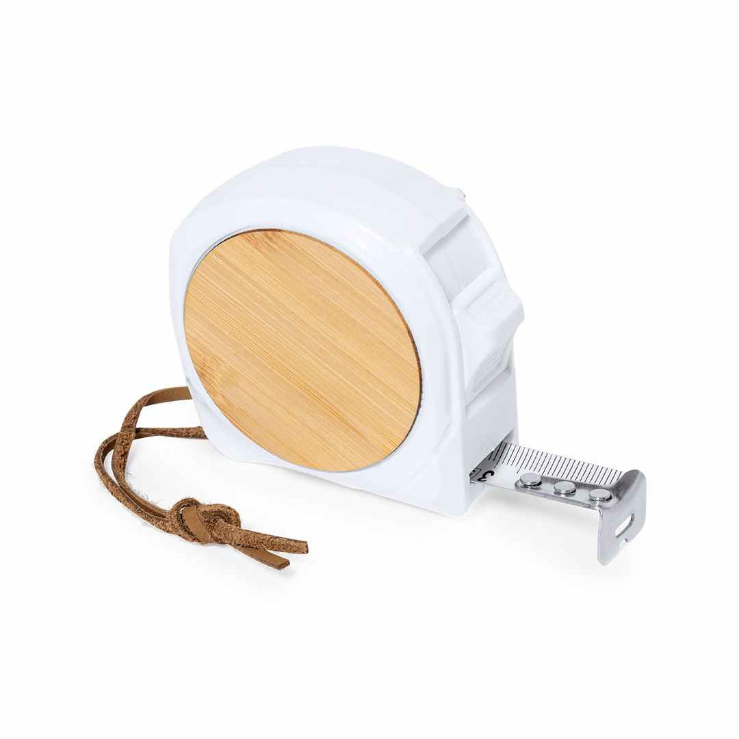 Rolmaat van 5 meter in een ABS kunststof behuizing. De behuizing heeft een zogenaamde rubberen touch. De rolmaat heeft een metalen meetlint en aan de zijkant een riemclip. Ook is een polsriem aangebracht. Uw rolmaat wordt pas echt compleet met uw eigen logo erop. Het ronde bamboe plaatje is er speciaal voor aangebracht. Uw logo wordt dan standaard aangebracht met een lasergravure. Uw logo wordt dan met een laserstraal in het hout aangebracht. Wilt u liever dat wij uw logo drukken dan kunt u dat aangeven in de kolom "opmerkingen" bij uw bestelling. We nemen dan kontakt met u op voor de juiste drukprijs. U kunt deze rolmaten ook zonder opdruk bestellen vanaf 25 stuks. Iedere rolmaat wordt per stuk verpakt geleverd in een naturel doosje.