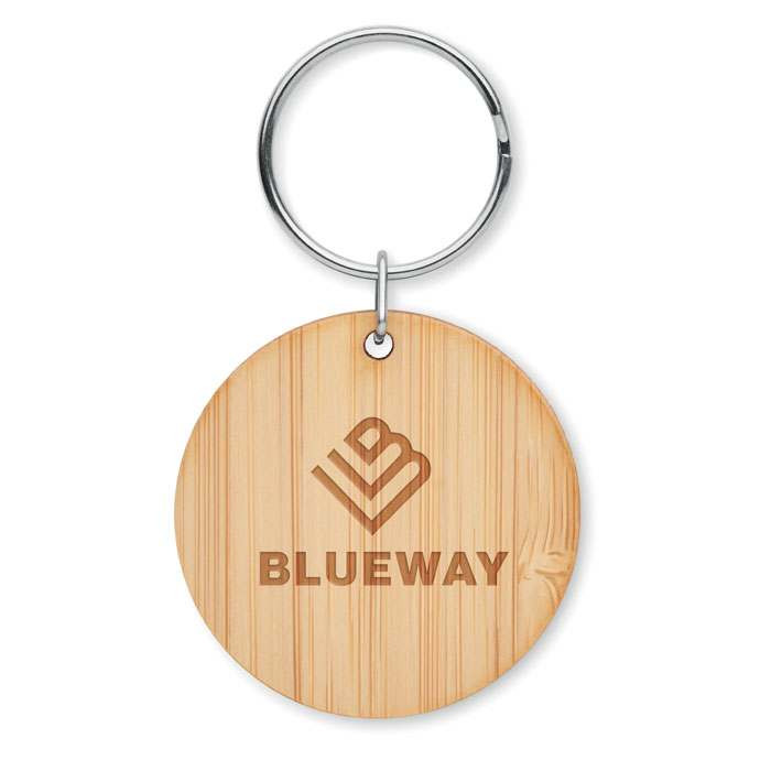 Ronde sleutelhanger van Bamboe. Deze houten sleutelhanger heeft een diameter van 4 cm. We kunnen de sleutelhanger van uw logo voorzien d.m.v. een lasergravure. Uw logo (of tekst) wordt dan als het ware in het bamboe gebrand. Bamboe is een snelgroeiende houtsoort. Het gebruik van dit materiaal is daarom extra duurzaam. Omdat bamboe een natuurproduct is kunnen artikelen onderling van elkaar verschillen. U kunt deze sleutelhangers zonder opdruk bestellen vanaf 150 stuks.   :