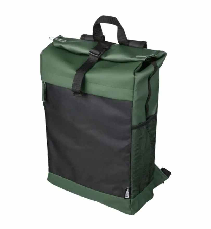 Rugtas van 600D rPET polyester met een rolsluiting. De rugtas heeft een afmeting van 28 x 12 x 51 cm en heeft een verborgen voorvak. De rugtas is afgewerkt met een waterafstotende PU coating aaqn de voorzijde. gevoerd laptopvak (geschikt voor laptops t/m 15 inch), mesh zijvakken en in totaal vijf compartimenten, inclusief binnen- en voorvakken. . Het draagvermogen van de tas is maar liefst 15 kg. Aan de buitenzijde van de tas is standaard een rPET label gestikt. RPET is een materiaal dat is gemaakt van oude PET-flessen. Hier wordt een garen van gesponnen en daar is dan dit artikel weer van gemaakt. Dit maakt dit artikel een echt duurzaam artikel. We kunnen de tas voor u bedrukken met een digitaal geprinte full-colour transfer. We kunnen dit artikel voor u bedrukken in 1- of meerdere drukkleuren. Voor de prijs maakt het niet uit in hoeveel kleuren uw logo gedrukt moet worden. Wanneer u bij uw bestelling dan kiest voor 1 drukkleur en daarna kiest u de drukkleur "full-color" dan drukken wij uw logo in meerdere kleuren terwijl u slechts voor 1 drukkleur betaald. U kunt deze tassen ook zonder opdruk bestellen. De minimale afname is dan 10 stuks.