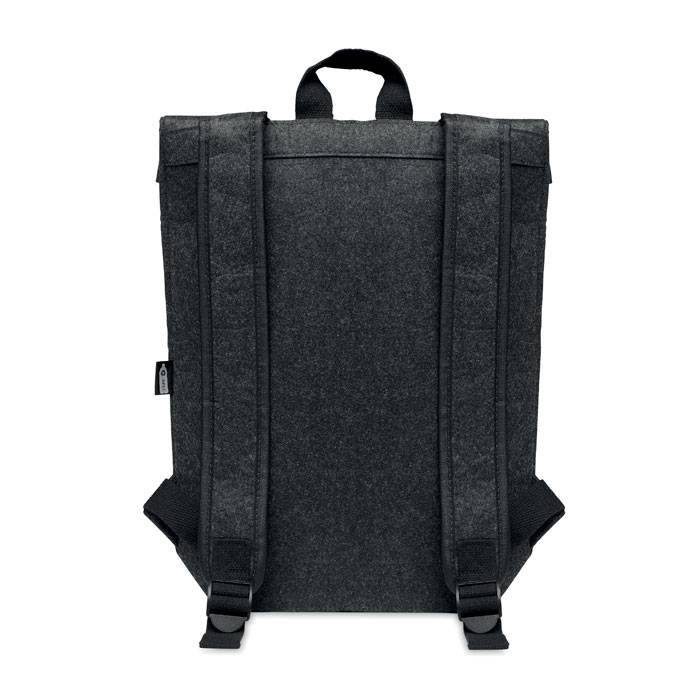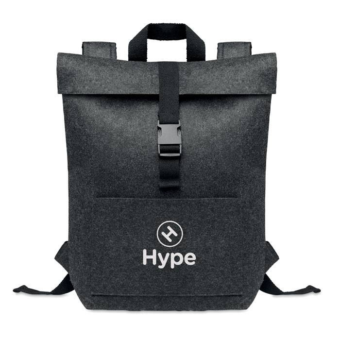Rugzak van RPET vilt met sluitbanden van katoen. Tevens is de tas voorzien van een Laptop compartiment. RPET is een materiaal dat is gemaakt van oude PET-flessen. Hier wordt een garen van gesponnen en daar is dan dit artikel weer van gemaakt. Dit maakt dit artikel een echt duurzaam artikel. Aan de zijkant van de tas is standaard een label gestikt waaruit blijkt dat deze tas is gemaakt van het millieuvriendelijke RPET. De rugzak bedrukken we voor u met uw logo vanaf 15 stuks. Wilt u de rugtas liever zonder opdruk bestellen? dan kan dat al vanaf 5 stuks.